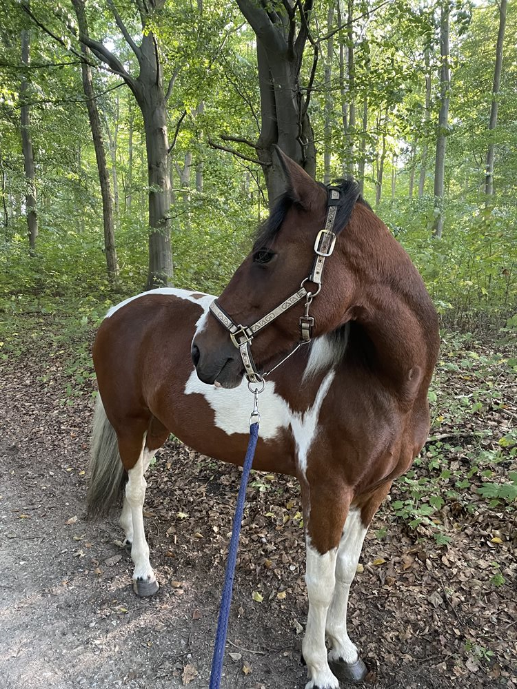 Flikka er en dejlig pony blandet af New Forrest pony og Pinto. Jeg har haft hende i 10 år og hun betyder derfor rigtig meget for mig, men jeg må erkende at tiden og lysten til at ride ikke er der mere. Hun sælges primært som skovturspony, da hun foretrækker mest at komme en god tur i skoven. Dog har jeg også reddet en del dressur på hende - på hyggeplan, så hun ville også sagtens kunne bruges som allround pony hvis dette er hvad man ønsker. Flikka er en bestemt pony som ønsker selv at bestemme hvis man giver hende lov, og skal derfor have en lettere bestemt rytter til at vise hende vejen. Derfor er hun også typisk lidt svære at få frem lige i starten af turen indtil hun lige er kommet i gang, da hun er lidt doven. Jeg håber på at kunne finde et dejligt blivende hjem til hende hvor hun bliver hygget om, og får alt den opmærksomhed som hun mangler lige nu. Hun sælges med alt hendes udstyr: dækkener, longegrej, sadel, hovedtøj osv. for 40.000kr