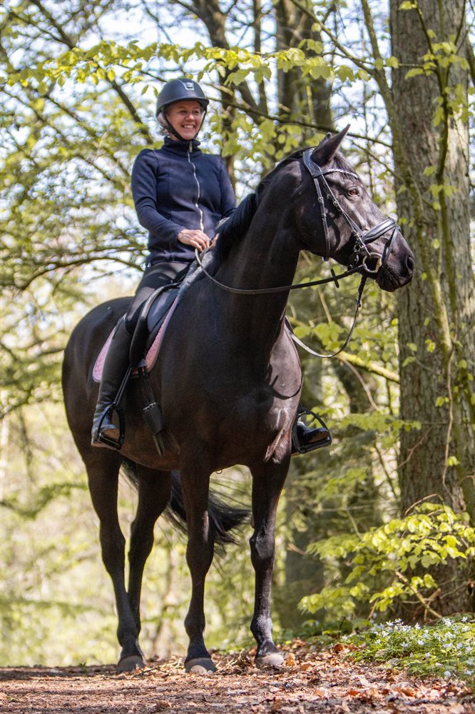 Ukompliceret 12 årig Oldenborg Hoppe sælges. Francess er en utrolig sød og nem hoppe, redet for lette hjælpere. Hun er købt fra avler som 8 års hvor hun kun var redet let som 3 og 4 års. Jeg har redet hende og trænet hende primært via Anatomisk Rigtig Ridning (ARR) dvs både i kapsun og med rytter. Til trods for 4 år uden rytter kunne man sætte sig lige op og ride, hun var helt cool. Hun er en rigtig ven som altid gør sit bedste. Hun er vant til at blive læsset og kørt i skov, strand oa.Hun er redet i bymiljø og skridtet af alene gennem vores landsby. Hun er trafiksikker. Grundet mig er hun ikke redet alene på længere skovture - det bryder jeg mig ikke om. Hun er redet alene i skoven som ung. På Francess kan du ride en tur i skridt, trav eller galop for løse tøjler. De andre heste kan forlade hende og hun reagerer ikke på det. Hun er modig - har blandt andet været på miljøtræningskursus hvor hun blev udnævnt som den modige de andre skulle følge efter. Hun kan godt kigge på ting eller synes at noget er lidt farligt, men hun har et sundt reaktionsmønster. Hun er 70% fuldblod og hun er derfor fremadsøgende med god energi. Jeg har haft hende alene med til klubstævner og har startet LC og LB, her har hun været cool og hun har fået placeringer. Jeg har ikke haft tiden til at gøre mere ved stævneridning og nu har konkurrencer med hund fået overtaget, derfor har jeg desværre ikke tiden til hende længere. Hun er passet med smed, vacc, tandrasp (er netop ordnet - kun alm tandspidser) og har ikke haft sygedage. Hun er ren i røngten som ung. Hun er for dig som ønsker en god ridetur på en sød og super reel hest. En hest som er uproblematisk i al adfærd. Pris 70.000.- Der kan tilkøbes udstyr, deriblandt Christoph Hubertus sadel tilpasset Francess.