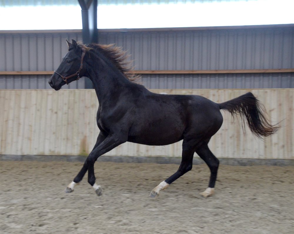 Han er klargjort til tilridning, er sadel- og trensevant, går i lange liner, har haft dukke på ryggen samt kan indparkere ved skammel. En særdeles fornuftig, arbejdssom og cool unghest, der er klar til næste skridt.