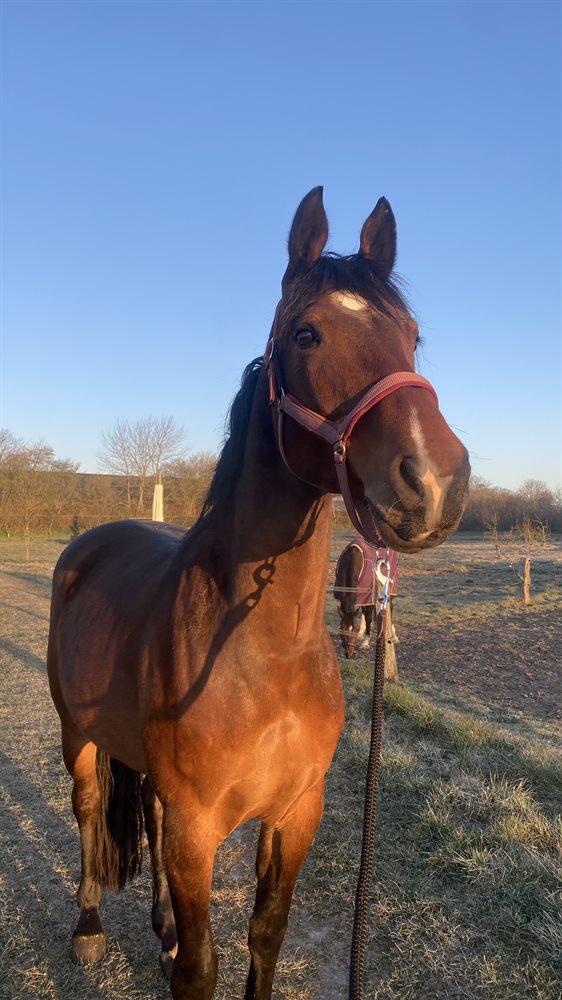 En dejlig hest med et godt temperament og et venligt sind. Hun er ca. uddannet til LB-niveau i dressur, men har potentiale til mere.