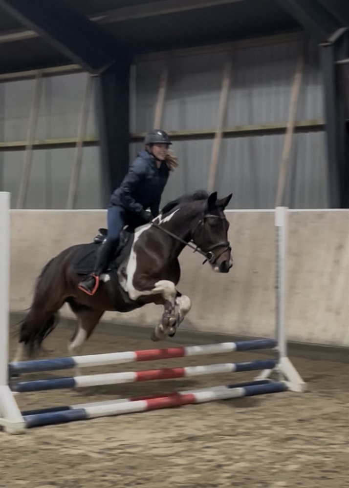 Han mangler noget balance og vil hellere trave end galopere. Han er glad for at springe.
