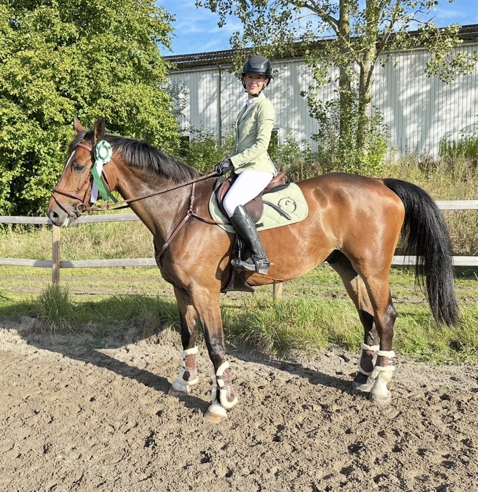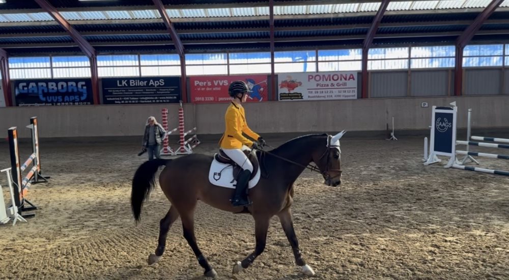 Jeg har haft ham i et år og lagt rigtig meget arbejde i hans dressur og flatwork, hvilket er blevet rigtig godt. Han ville sagtens kunne gå dressurstævner, ligger blødt i hånden, søger tøjlen og har enormt nemt ved changementer osv.