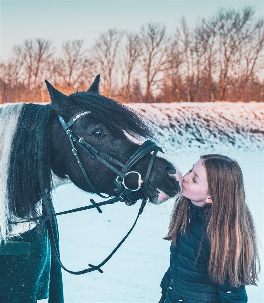 Gypsy er en sød og rolig Tinker hoppe på 12 år og 138 cm. Vi har haft hende fra hun var 4 år og hun var min datters første pony. Hun er god som dagen er lang og ikke bange for noget. Hun går fint i trailer og elsker at være med til stævner. Hun elsker at blive klippet og generelt alt, hvor hun kan være midtpunkt. Hun elsker børn (og voksne) og står altid pænt på staldgangen. Gypsy kan både gå alene på fold, men hun elsker en god flok venner, så hos os, har hun gået i en stor flok.