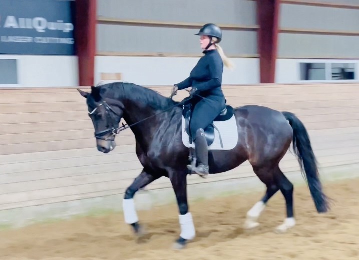 • Tio er en super skøn hoppe med masser af personlighed og et kæmpe hjerte. Hun knytter sig stærkt til sine mennesker og er et ægte nussehoved i stalden. Hun er redet til og med MB2 i dressur og viser fortsat potentiale for mere i de rette hænder. Med en rytter, der kan give hende ro, struktur og tydelig ridning, har hun kapacitet til at fortsætte op ad rækkerne.