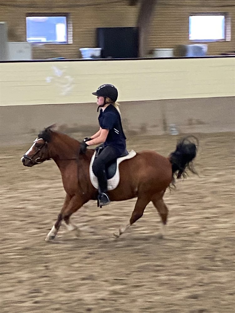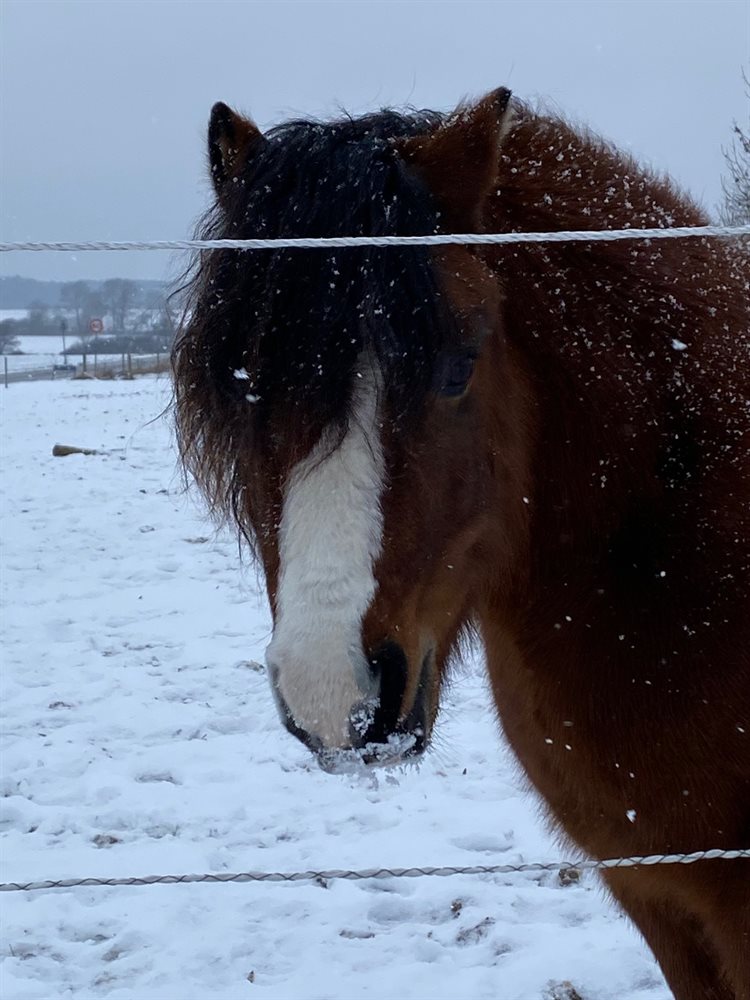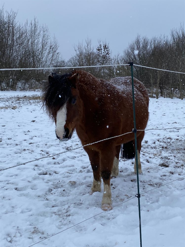 Super charmerende pony. Han er ikke redet helt alderssvarende, men har et stort potentiale, hvis man har tiden til ham. Han vil gerne arbejde og vil gerne udfordres lidt. Han er blevet trænet lidt fra jorden også, og har her taget alle udfordringer i stiv arm. Han er ret cool i hovedet, men kan selvfølgelig godt blive forskrækket. Han er trafiksikker og rigtig god til at være alene både i boks og på tur. Han har været til et par små øve-stævner. Han elsker desværre græs rigtig meget, og kan derfor godt bare tage hovedet ned og græsse. Han kan godt tåle lidt græs (hvis han motioneres meget, ellers bliver han tyk) og har aldrig været forfangen. Han har en mindre handelsfejl, med at han en gang i mellem hoster et par gange, når han spiser. Han får ligesom maden galt i halsen, og hvis du gnubber ham på undersiden af halsen, frembringer det også et par host. Der er intet under ridning, og det er vurderet af min dyrlæge til ikke at have nogen betydning for brugen af ham, hvilket vi heller aldrig har oplevet.