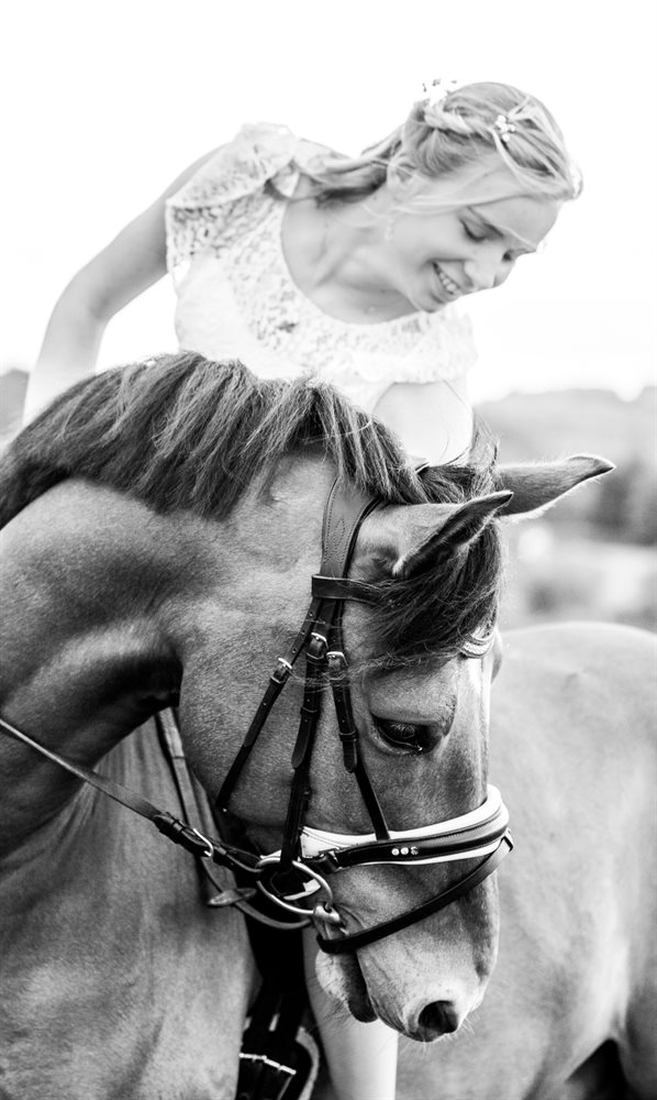Han kan rides ude i alt slags vejr, er 100% trafiksikker og vokset op med byggeri og tunge maskiner på vores ejendom.