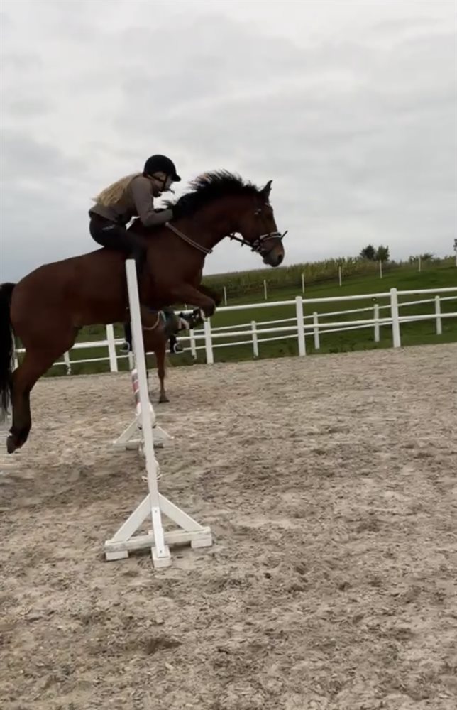 Dressuren har været i fokus, men han springer gerne en bane på 60-70 cm. Han har sprunget 110 i løsspring, og 1 m med rytter.