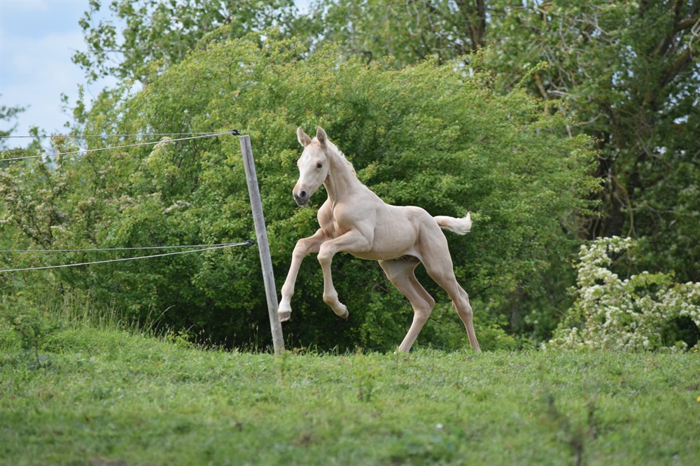 Jeg har også et palominofarvet hingsteføl fra i år, han har ren dressurafstamning - se sidste billede - pris 45.000.