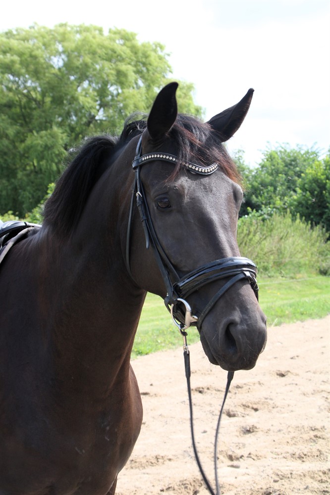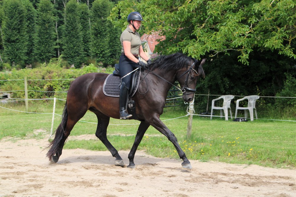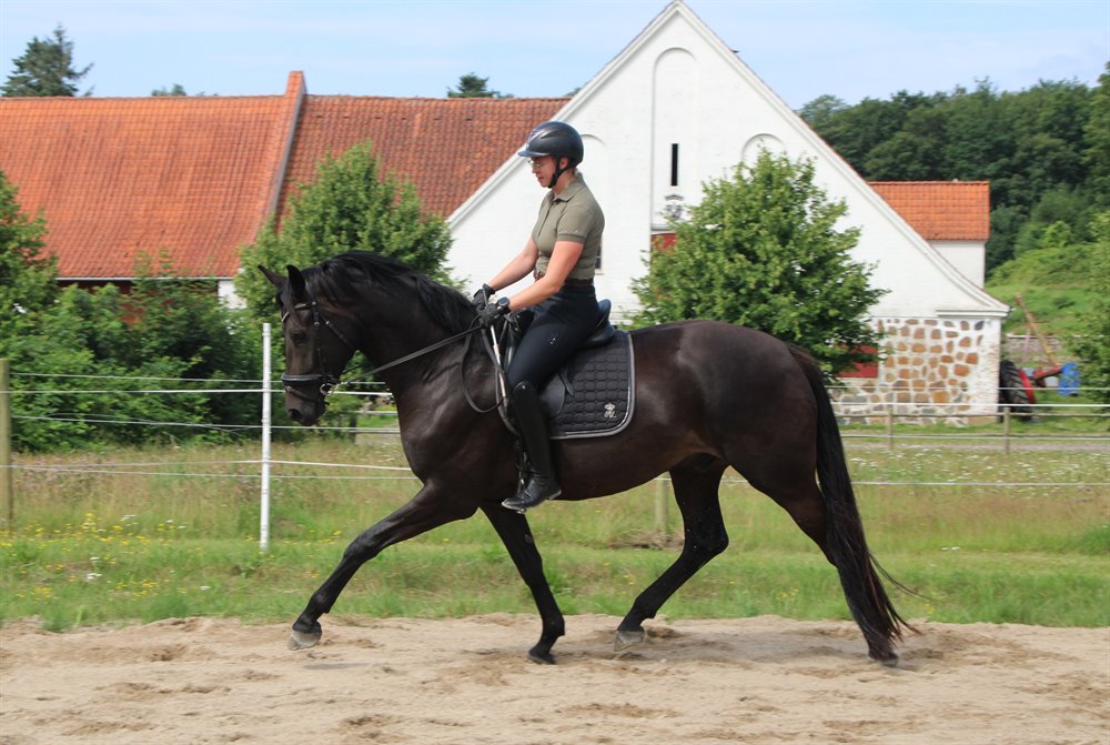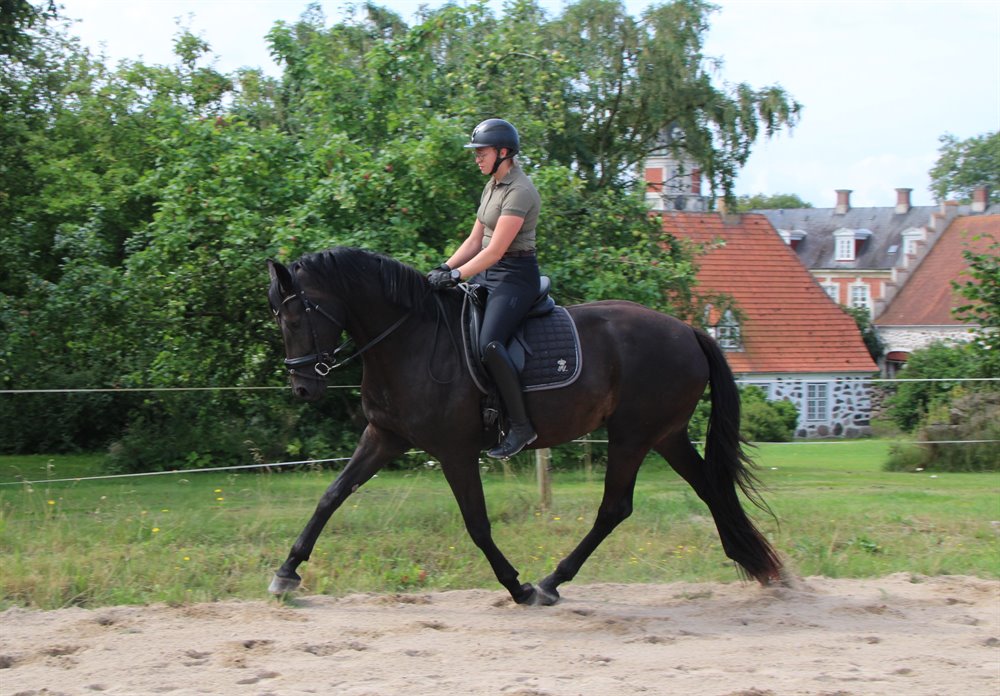 Han blev tilredet i sommer og har taget alt det nye med imponerende ro og gåpåmod. Han er nysgerrig, samarbejdsvillig og altid klar på at lære nyt – en rigtig god kammerat både i stalden og under rytter.
