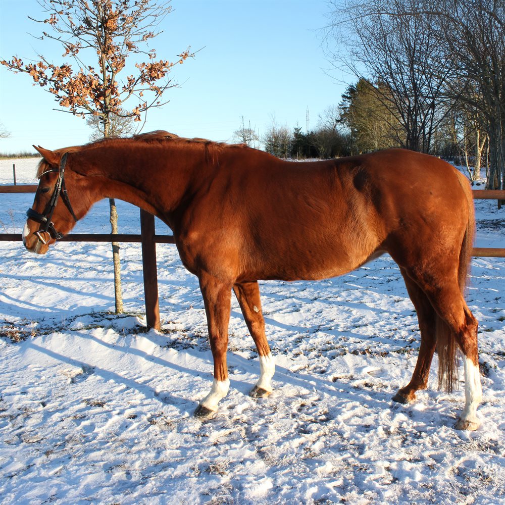 Jackie er en elegant og feminin hoppe født 21.05.2019, med en stang på ca. 170 cm. Hun sælges som avlshoppe med et særligt interessant blod, der gør hende oplagt til avl af moderne, ridelige dressurheste.