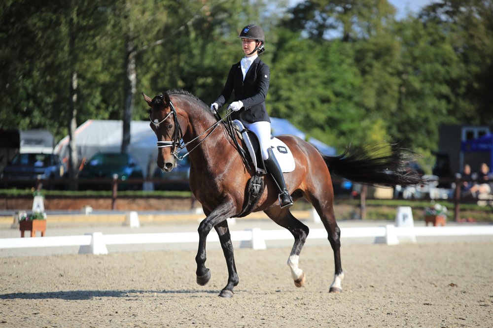 Jolene har en masse stævneerfaring og elsker at være til stævne. Hun har gået alt op til Prix St. George, som hun seneste har gået til 67,9 %. Derudover har hun massere af mesterskabstitler i bagagen. Hun kigger ikke og giver altid en god tur. Jolene vil passe til mange ryttere, men vil især gøre det godt som junior og youngrider hest.