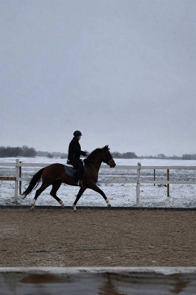 Moderen har før sin avlskarriere været redet under professionel rytter Renee Igelski (bl.a. EM-sølv).