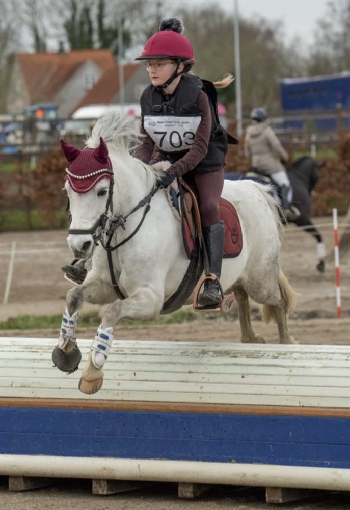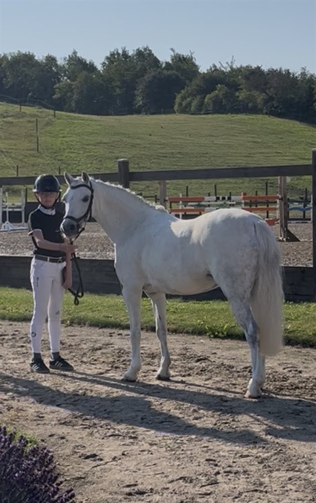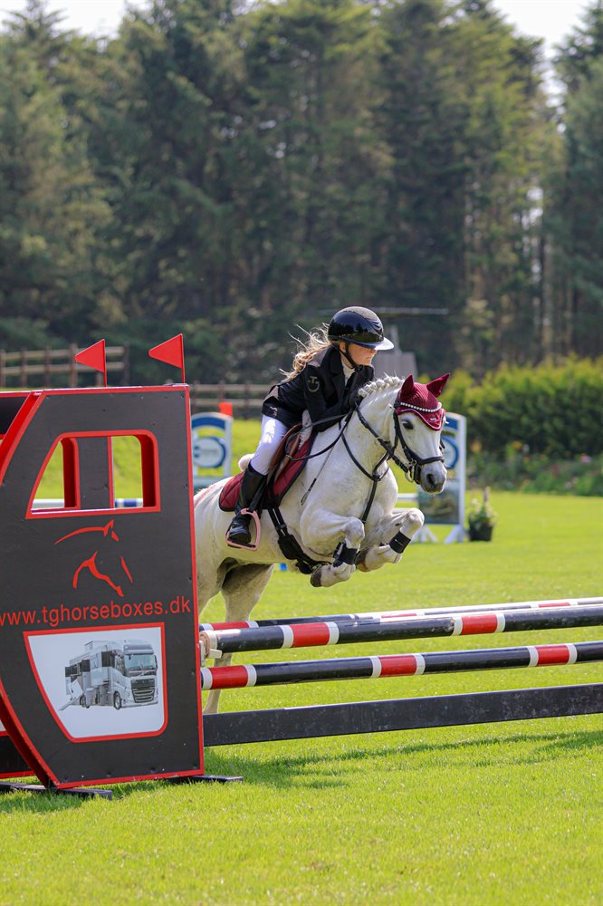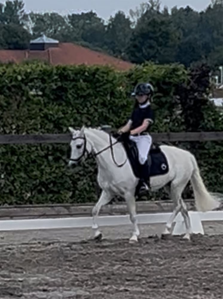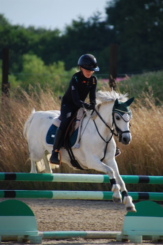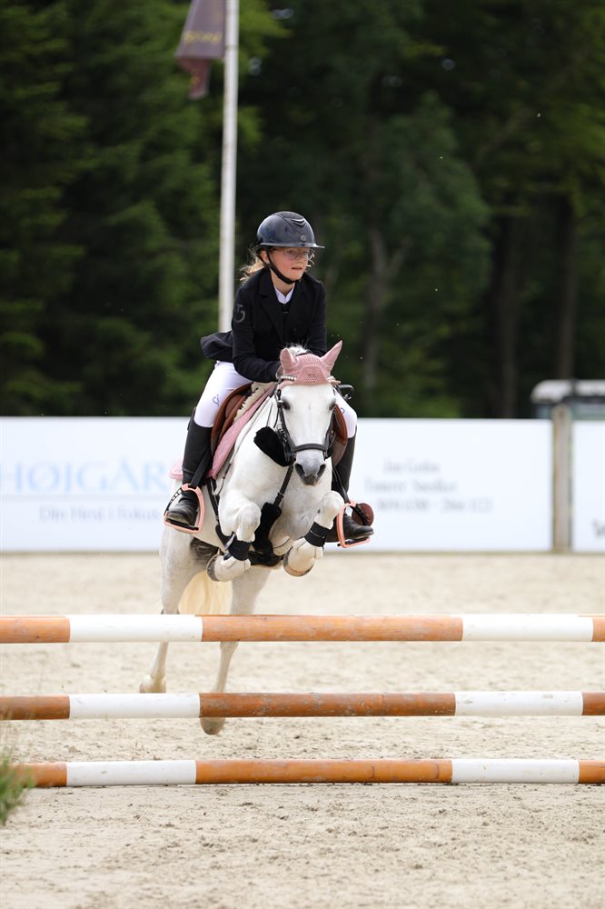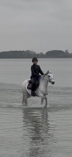 Vi har haft Magic i snart 6 år. Pigerne har selv uddannet Magic og begge mine piger har sprunget fra LC til MB på hende. Magic er med på det hele, en tur på stranden eller i skoven, ridelejer eller flerdags stævner. Hun har gennemført CnCP80. Dressuren har ikke været mine pigers fokus, men hun arbejder meget fint.
