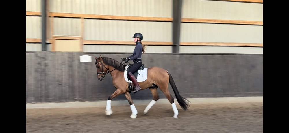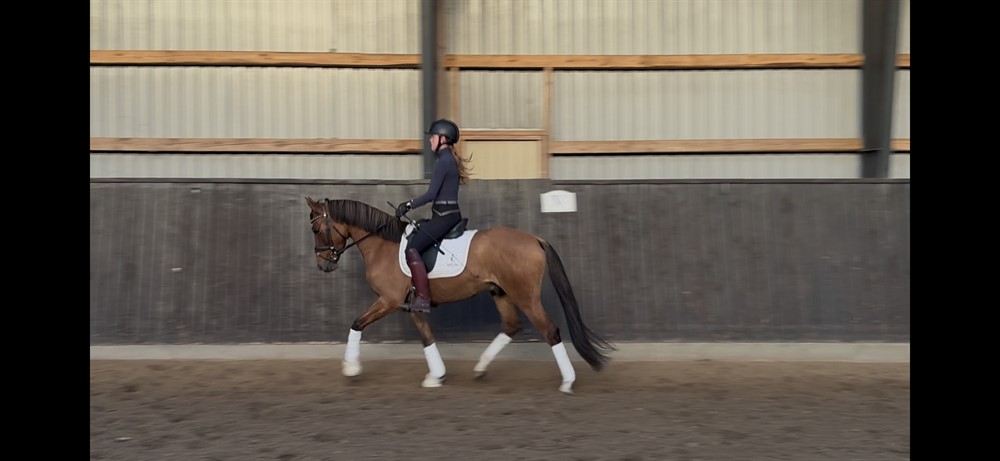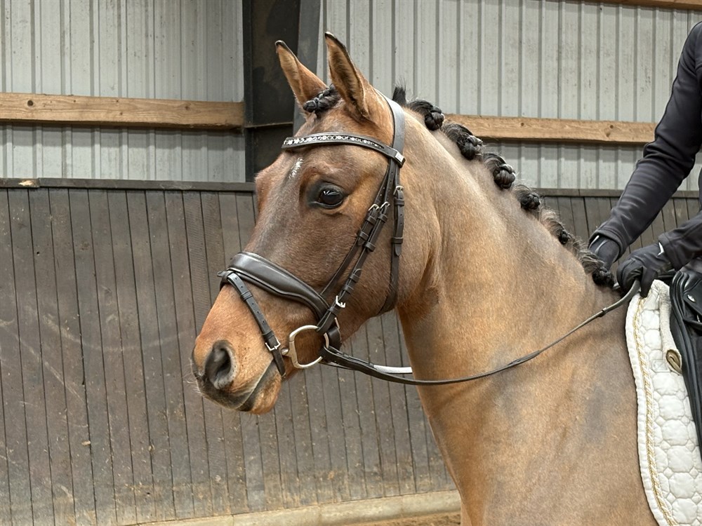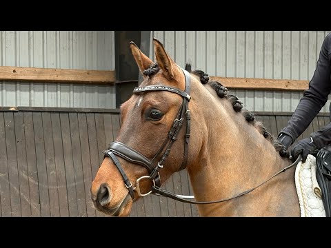 Dinaro er en super charmerende og let ridelig pony der blot skal uddannes mere. Han er tilredet som 3 års, haft voksepause og er nu sat igang igen. Han er passet med smed og vaccinationer. Han har et godt sadelleje så det er nemt at finde en sadel til ham. Han er sød og omgængelig i både stald og på fold og kan håndteres af både børn og voksne. Dinaro er redet både i ridehus og på udendørsbanen og kan rides alene og sammen med andre.