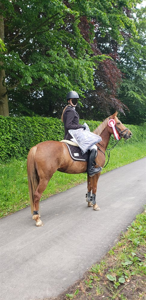 Starter M-klasser til stævner, men har endnu ikke toppet, da vi har taget den med ro, for at få en veluddannet pony, hvor både hoved og ben følger med.