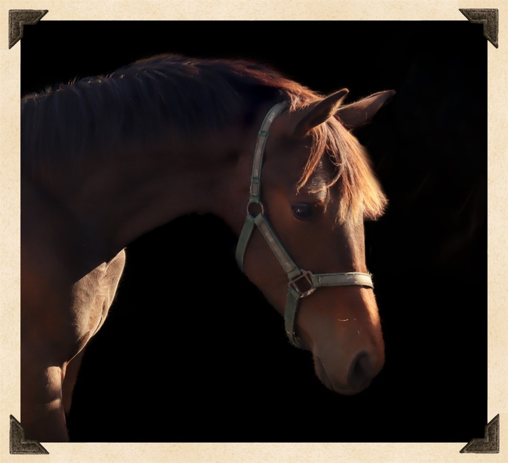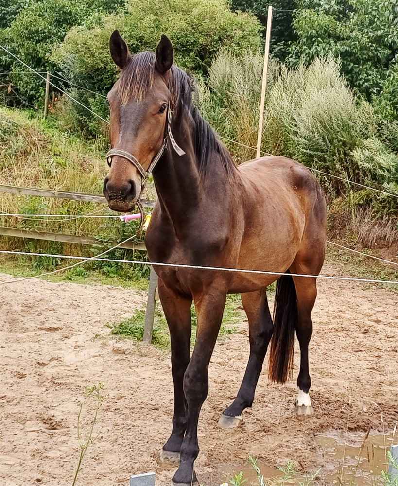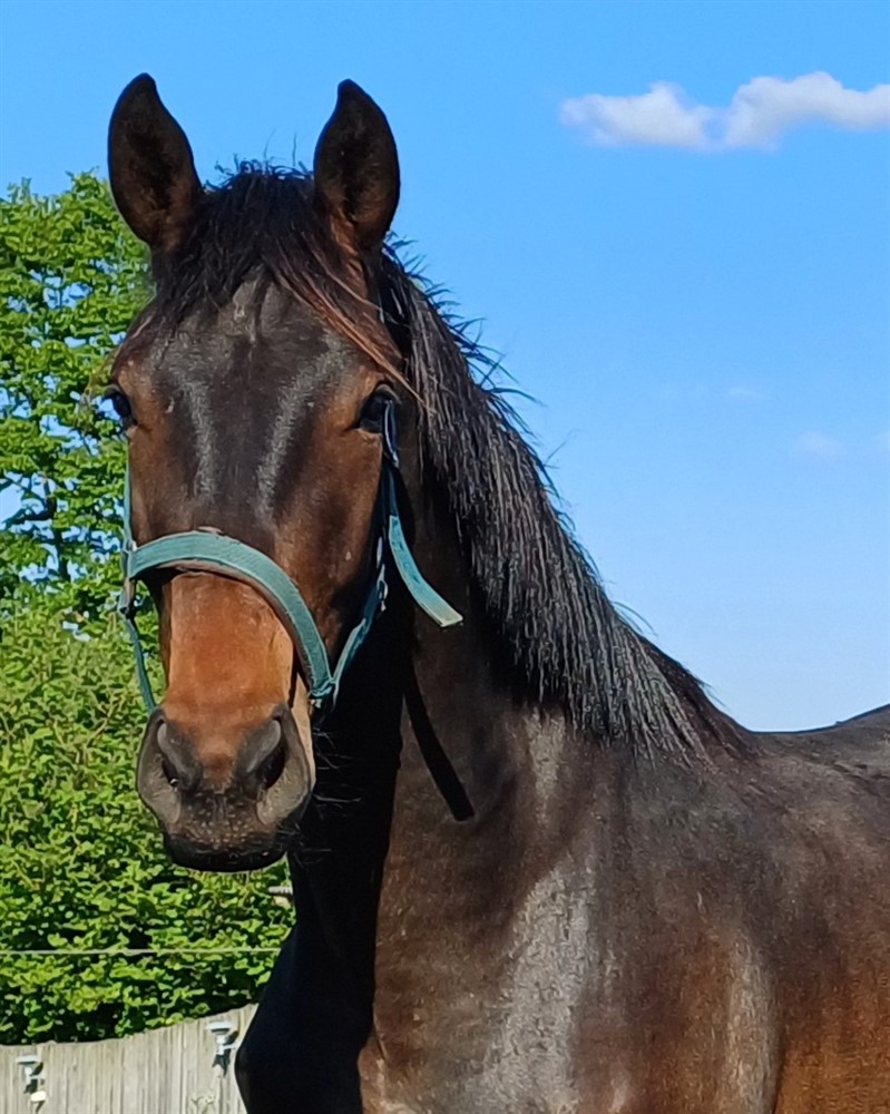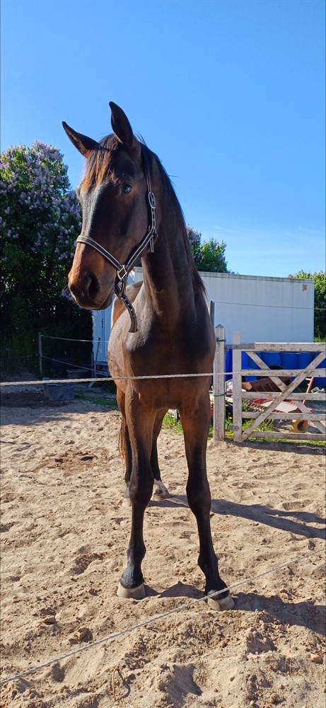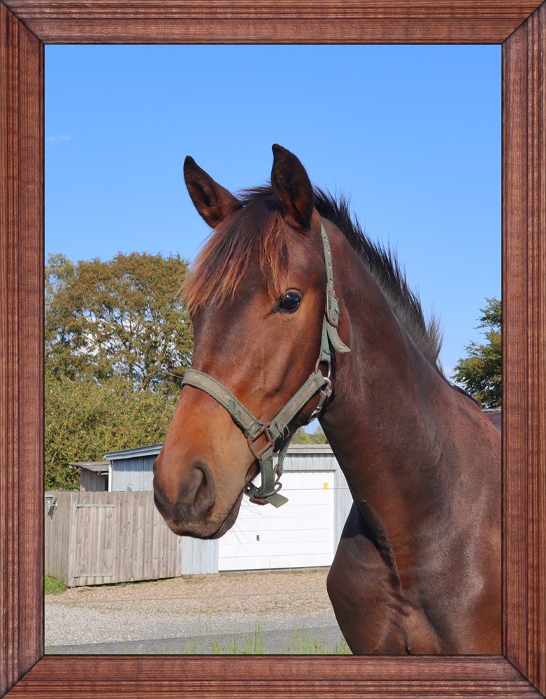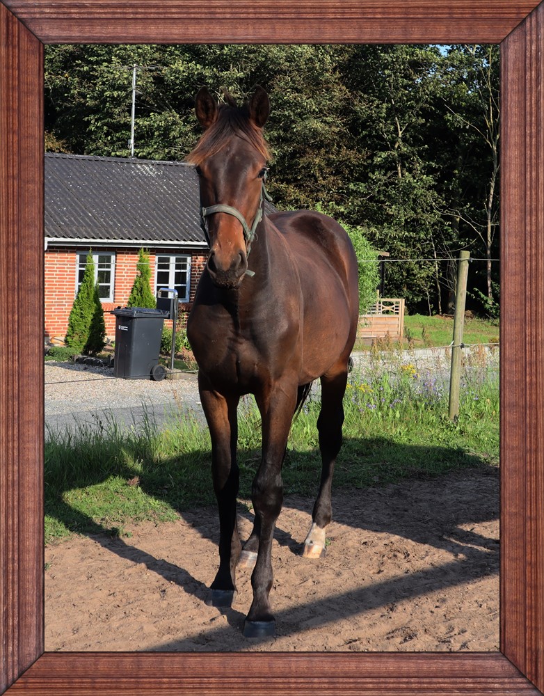 Han er vant til daglig håndtering og kan løfte alle fire ben uden problemer. Han står roligt bundet og tager nye oplevelser med nysgerrighed og ro.