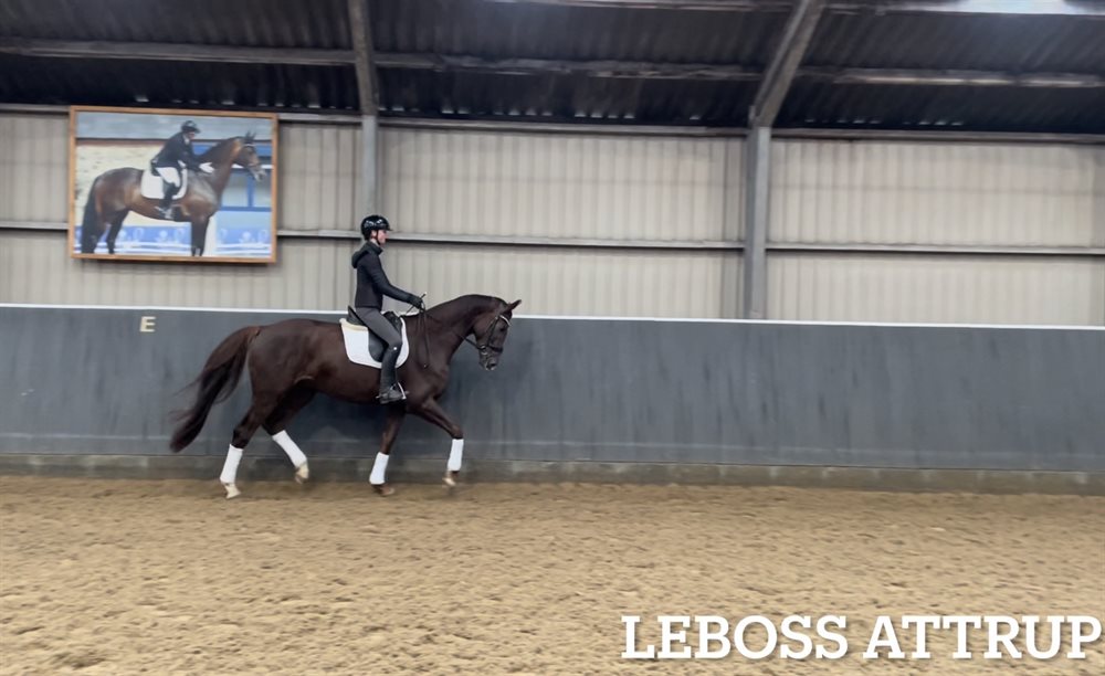 Leboss Attrup er en særdeles spændende og velgående vallak, som kun har været redet i ca. 4 måneder, men allerede viser en rigtig god indstilling til arbejdet og stor ridelighed.