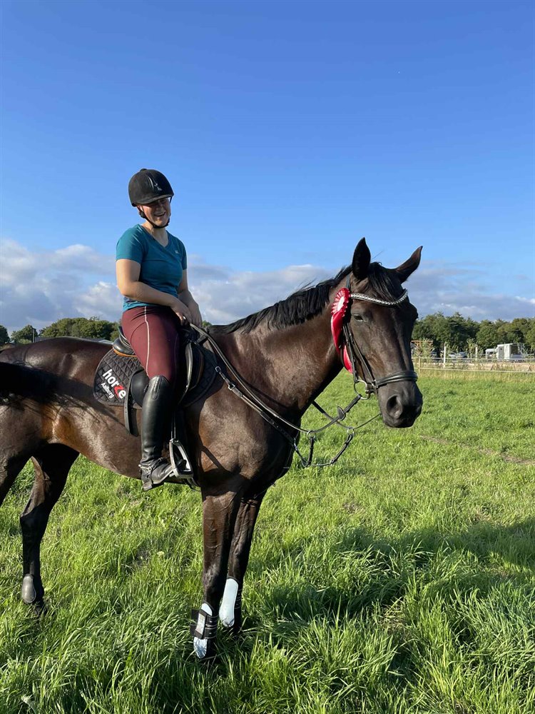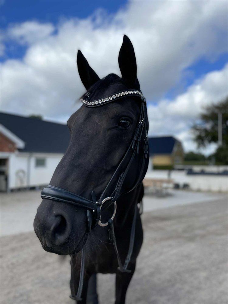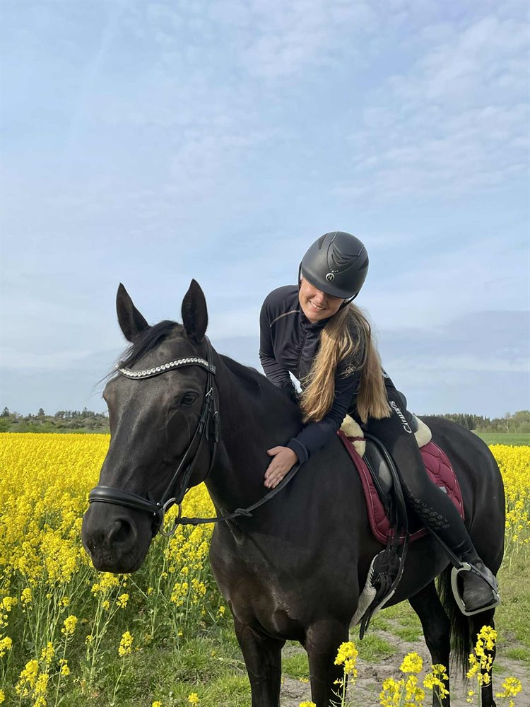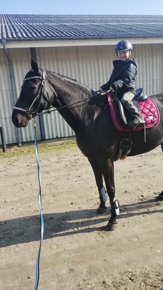 Hun springer med kæmpe glæde og overskud og er klar på opgaven når du tager hende ind på springbanen. Hun har gået 90 cm. Til stævne og springer 105-110 på hjemme bane.