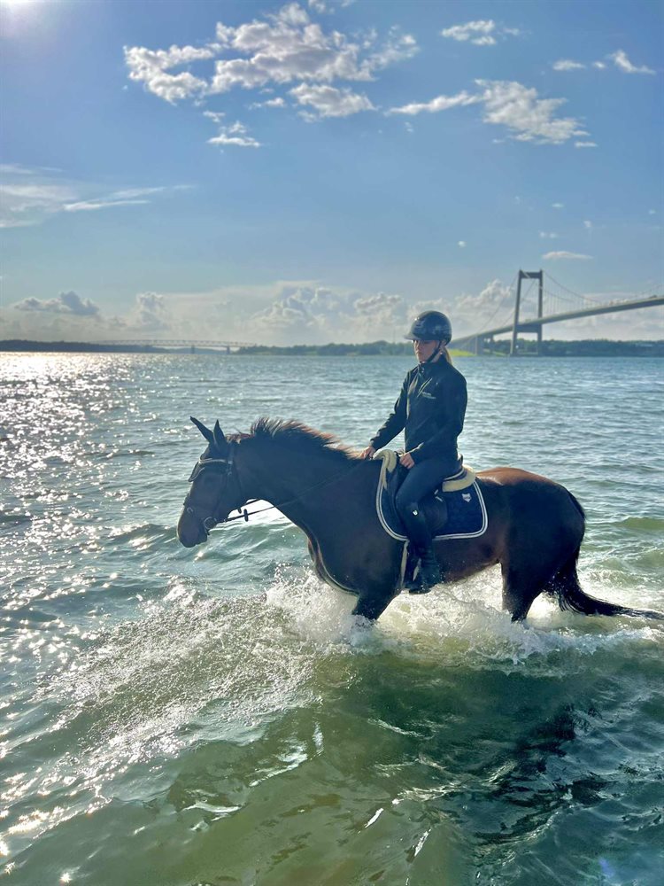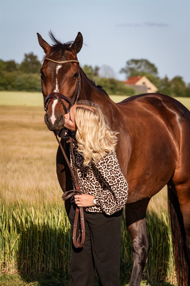 Hun går en super fin dressur men har desværre sagt fra på spring delen. Men tager stadig gerne et lille hop en gang i mellem.