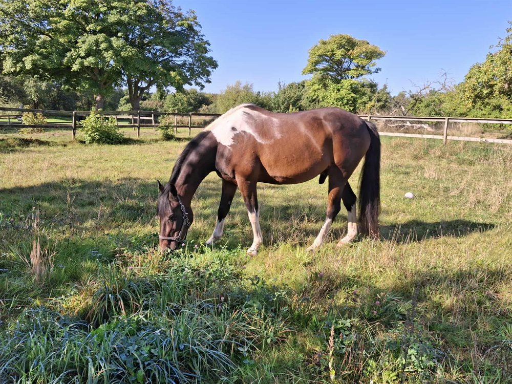 Amigo er født hos mig. Han er opvokset i fred og ro, primært i løsdrift sammen med 4-5 gode venner i forskellig alder og køn. Han er påbegyndt tilridning hos Letridning/ Karin Engelbrecht, har nu været der i 2 måneder. Karin er lige en træner efter min smag, det er hesten der er i centrum, vi tager det i det tempo, som passer til ham. Jeg tænker at han passer til dig der gerne vil have en sød og rar hest, som kan blive en ven igennem lang tid. Hans mor er pinto, far er oldenborger/araber (hul i hækken, vi troede ikke hoppn kunne blive i fol). Amigo går uden sko, har gode hove siger hans hovtrimmer. Han har ingen sygehistorie, er bare en glad hest, der gerne vil være sammen med mennesker. Der lægges løbende info/billeder/video op på facebook/Letridning. Pris 48.500 kr incl moms
