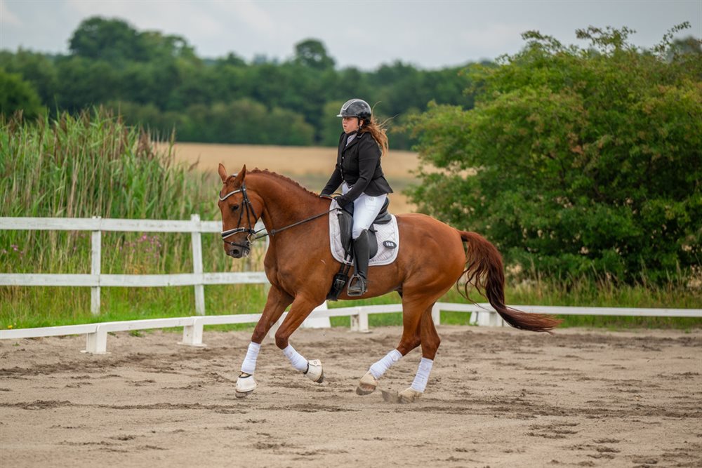 Er uddannet til LA4 i dressur og har sprunget op til 90 cm til træning.