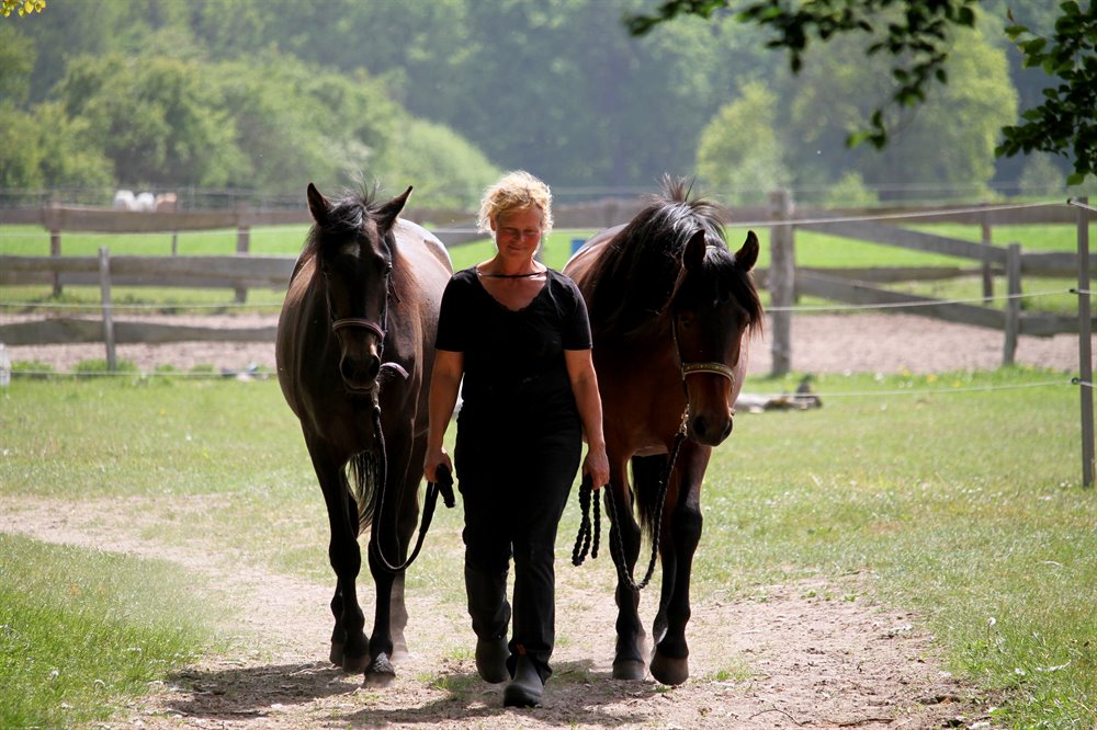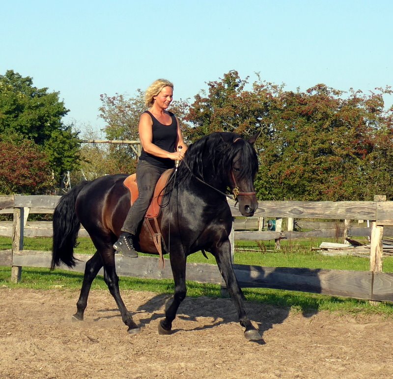 Lunallena er en veludviklet hoppe ud af en imponerende, hingstepraegede DV-moder fra elitehingsten Apollo, og faren er den karismatiske PRE-Showhingst Pimenton IV. Lunallena er en rolig, blid,nysgerrig, meget menneskeorienteret hoppe, som lever robust i en stor flok med andre følle og hopper. Hun er vaccineret og ormebehandlet, afslappet ved smeden, trailervant og kender til mange andre dyr og hverdagssituationer. Den tiltraekkende blanding af varmblod & spansk esprit lader forvente en alsidig ridehest med en særlig høj samlingsevne. Billeder af forældrene til sidst i galerien (brun mor, sort far). Lunallena har begynt med traeningen i frihedsdressur og flokarbejde. Hun kan ga frit som handhest og i gruppen (se billed). I frihedsdressuren er hun interesseret i nye udfordringer og har laeret basicövelserne af jordarbejde og trailparcours. Hun er ogsa vant til at ledsage en ridehest pa skovture.