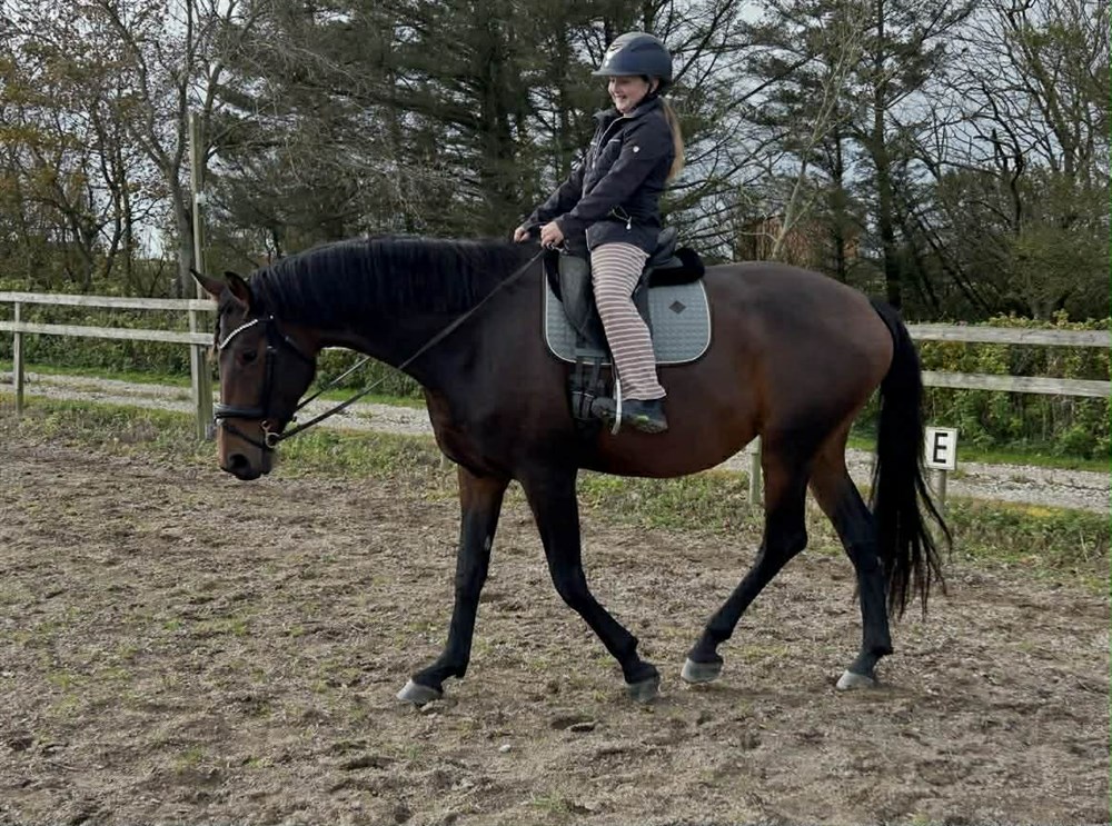 Af private årsager er ejer desværre nødsaget til at sælge, og Akasia er derfor nu tilbage hos avler i ridning med henblik på uddannelse og salg. Hun har været i ridning hos os i knap 6 uger nu og hun tager godt imod og udvikler sig stille og roligt. Hun fremstår sød, rar og samarbejdsvillig i arbejdet. Hun er selvgående og dejlig flytbar for schenklerne i sidebevægelser. Hun har behagelige bevægelser og er dejlig at være på. Lige nu arbejdes der primært på at forbedre styrke og balance.