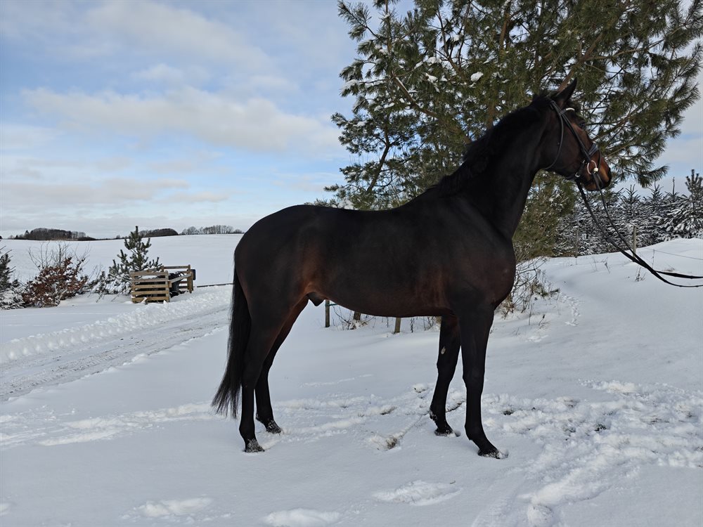5-årig vallak, ca. 168 cm, efter Morricone med Brentano II som morfar. En moderne type med god gang og et positivt arbejdsindstillet temperament.