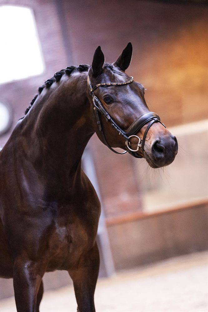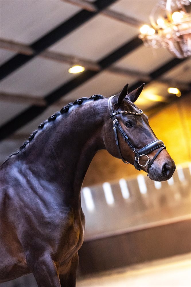 Maxima er en mørkebrun hoppe med en enestående udstråling. Hun udviser stort potentiale for dressur og er uddannet til M-niveau (mangler fortsat lidt rutine i changementerne). Hun er efter den legendariske Totilas og er trukket på samme mor som den kendte KWPN-hingst Hermès. Kåret som elitehoppe i KWPN og har tidligere fået to føl. Maxima er flink i al håndtering og har god tænding under rytter. Ingen tidligere skader. Ren i røntgen fra 2019. Du kan læse mere om hende på nextequine.com