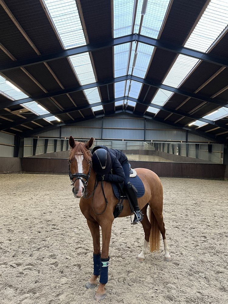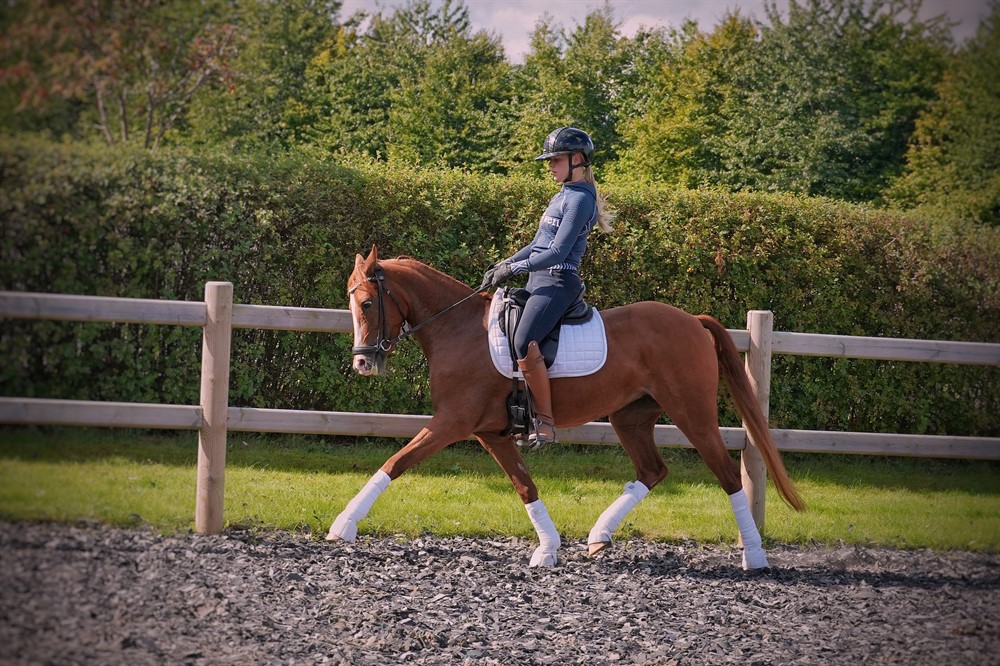 Hun blev tilredet hos os som 3 års og vi valgte at sætte hende i fol som 4 års, da hun var super fint med ridemæssigt - her har hun et hingsteføl efter FS Next Diamond, som vi er meget glade for! Dette tog hun desuden også fuldstændig uden komplikationer. Hun er primært redet af mig og af “min” pony pige. Har ikke gået stævner men var med til følkåring i Pferdestammbuch, hvor hun vandt følpræmie med fine resultater. Hjemme leger vi med schenkelvigninger i trav, skridtovergange og versader - hun snuser til LA - hun er meget lærernem og hun kan li’ det!
