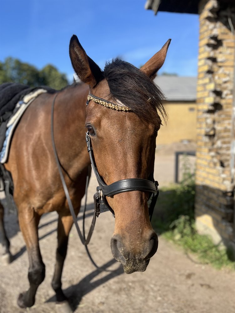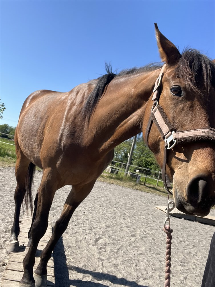 Med rytter bliver hun meget fremadgående og hurtigt usikker, men jeg har aldrig mødt hverken buk, stejl eller at hun er løbet afsted.