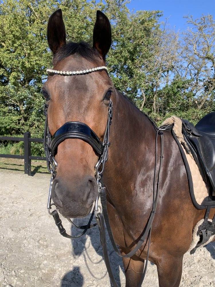 Mia is a sweet, forward thinking mare. She has competed at Prix Saint George level this summer, and is training towards Inter 1. Sweet to handle and she also enjoys a trip to the forest.