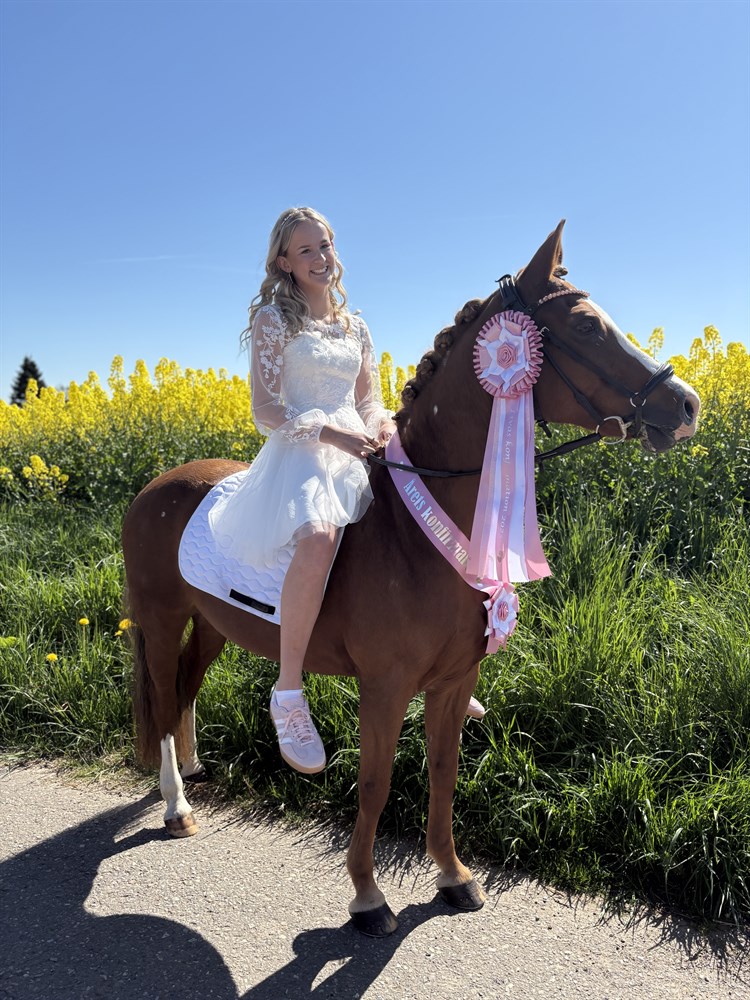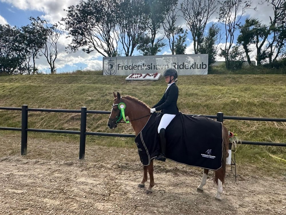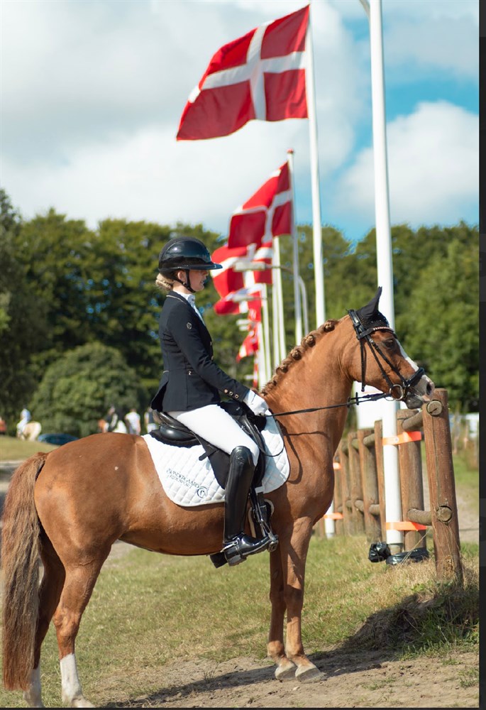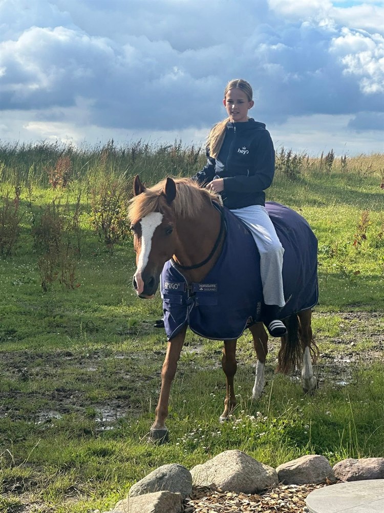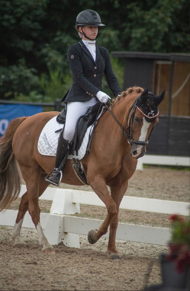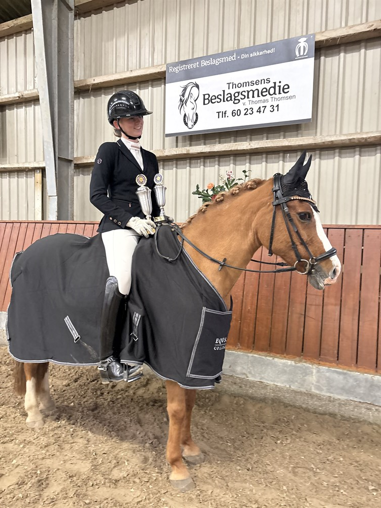 Tiff er 18 år, B-pony, 138 cm, New Forest med rød pas og uddannet til P-klasserne. Tiff har taget nuværende rytter fra LD til P-klasserne på 4 år.
