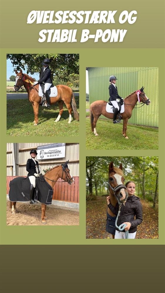 Stabil og øvelsesstærk B-pony sælges til en lille rutineret dreng/pige.