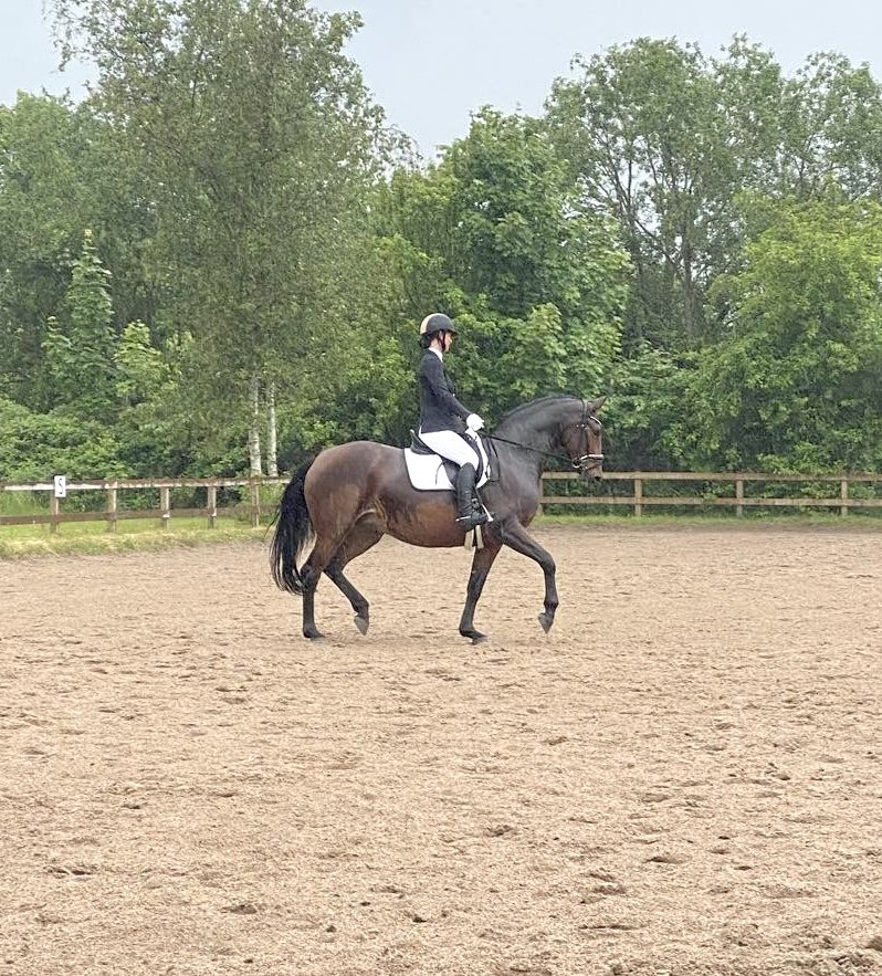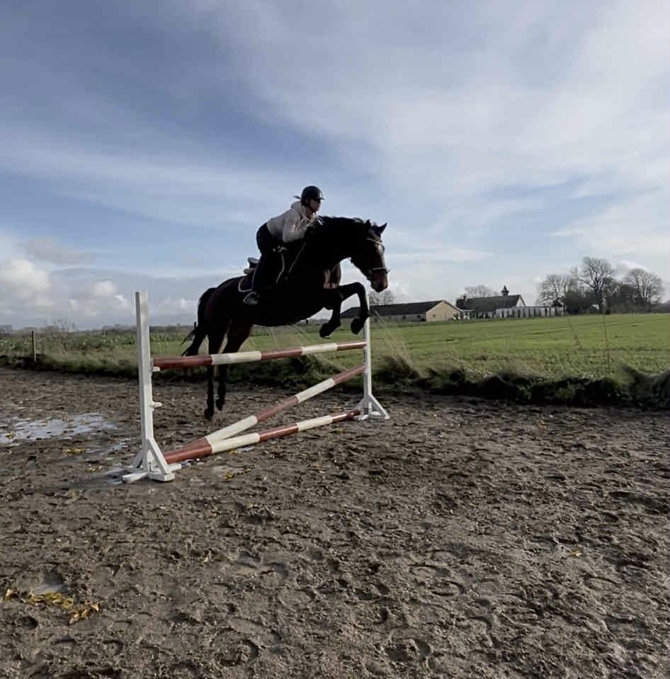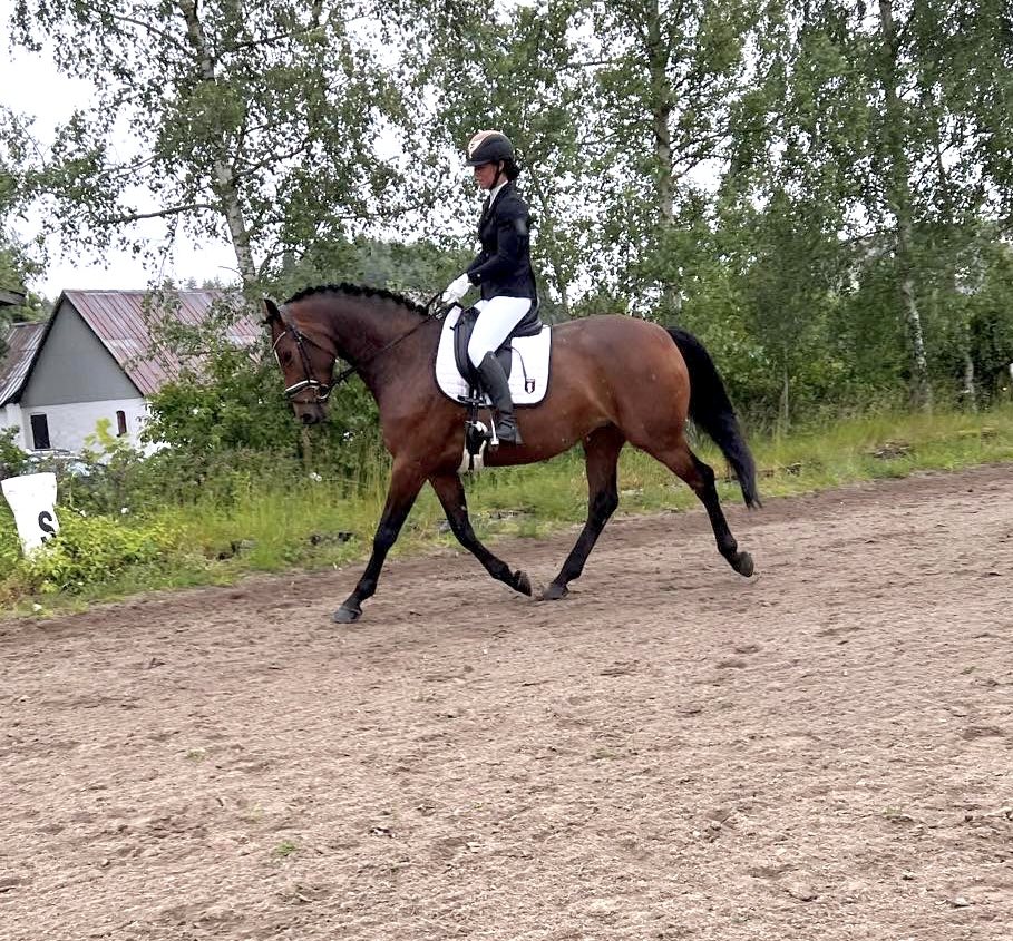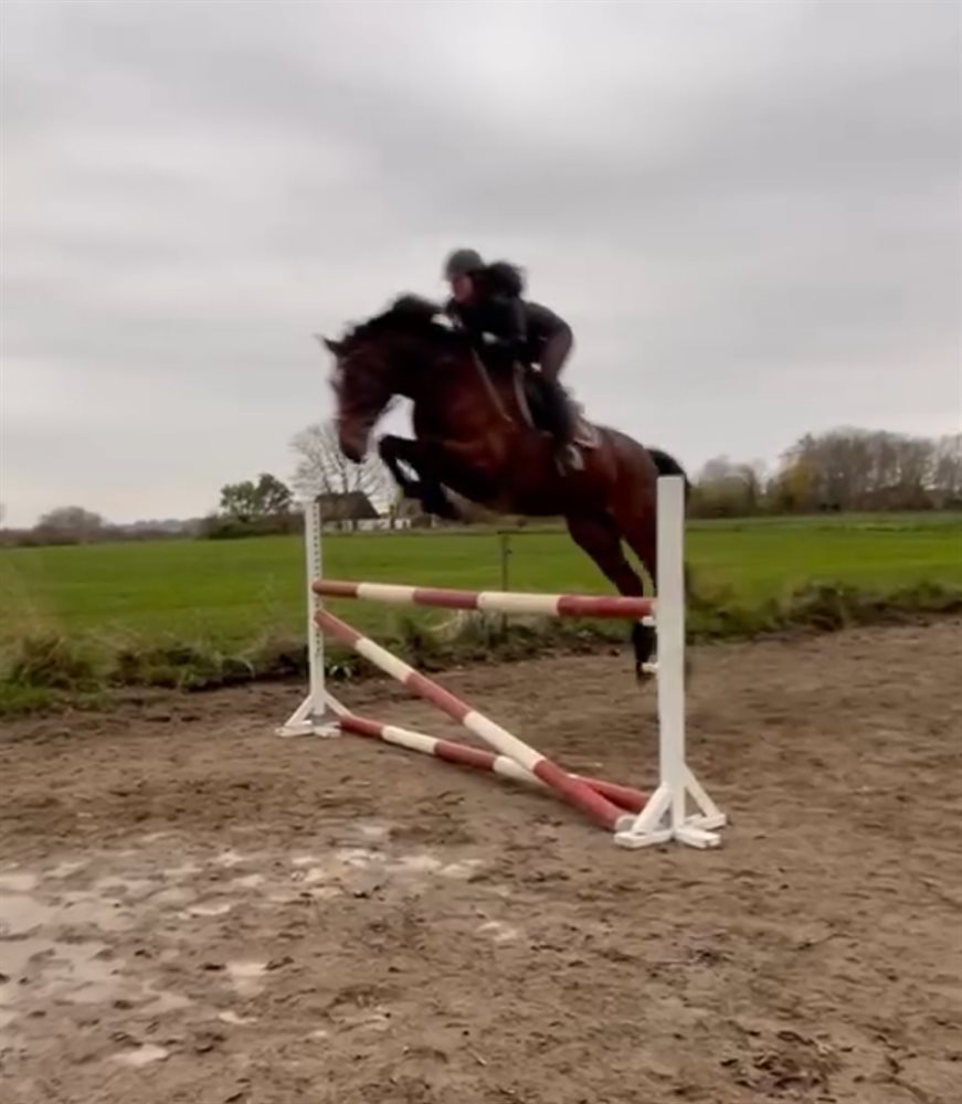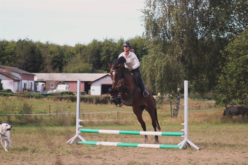 Men hun kan den basale dressur og har sprunget enkelte spring på 110cm og bane på 90cm. Men med kapacitet til meget mere! Hun springer med stort overskud og mod.