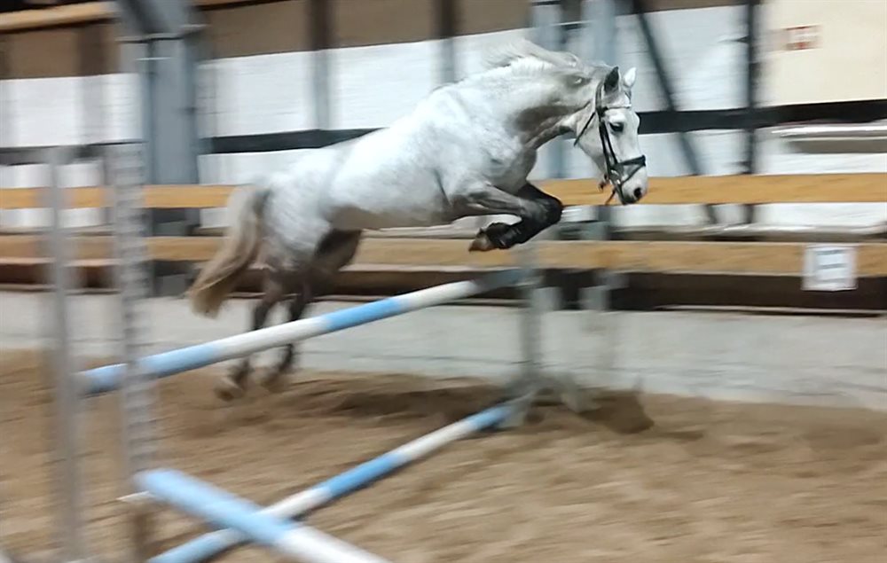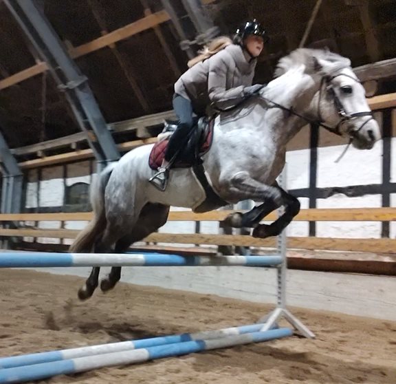 Hun har deltaget i en del springstævner før vi købte hende – det var ikke vores intention at deltage i stævner, men ville have en pony der kunne hvis det skulle være.