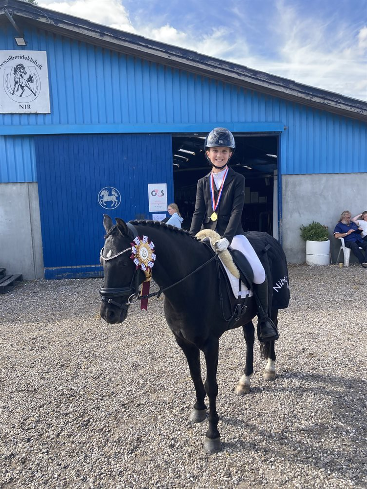 Han er vant til ugentlig undervisning, stævner og rider tur så ofte vejret tillader det.