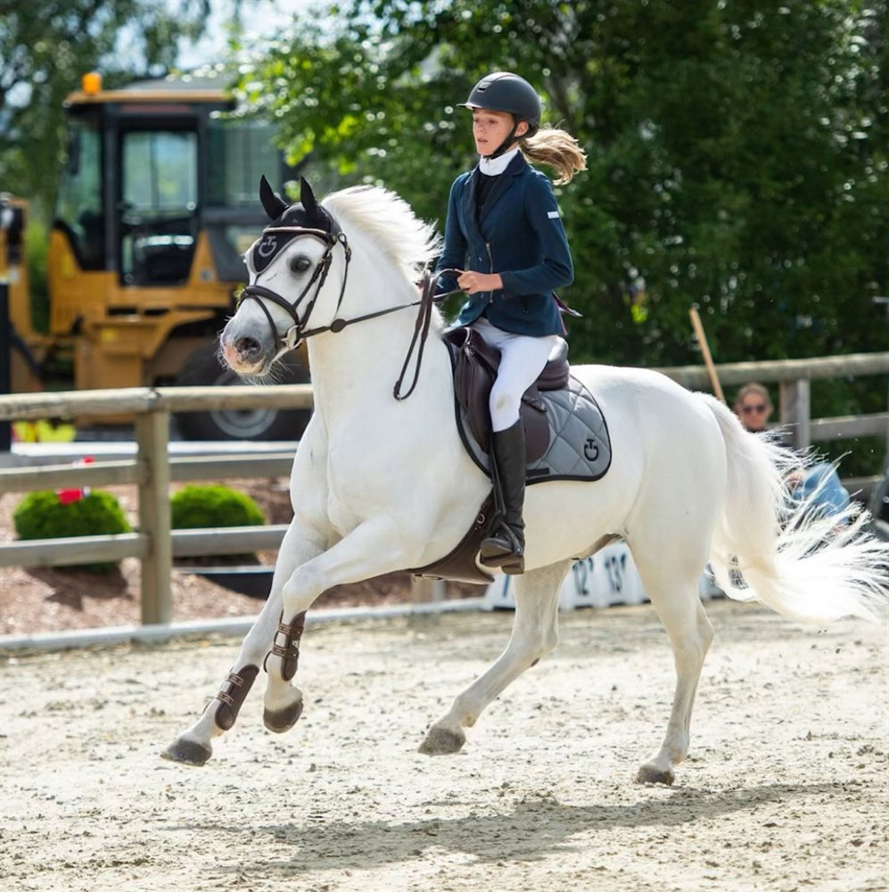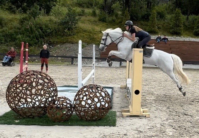Pelle går i dag stabilt 120 cm og har startet 125 cm. Han er hinderklok og forsiktig, og går oftest feilfrie runder. Da han kom til oss for 3 ½ år siden, hadde han kun gått noen små treningsstevner. Siden da har han utviklet seg til en solid MA-ponni med kapasitet for mer. Nå er tiden inne for at en ny rytter får ta del i hans videre reise. Han har en stor og balansert galopp som gjør ham ideell for de større klassene, samtidig som han er lett å håndtere og aldri blir for sterk. Å ri Pelle føles mer som å ri en liten hest – han har gode og runde bevegelser. I hverdagen er Pelle en fryd å ha med å gjøre. Han er snill, høflig og ukomplisert – både i stall og under ridning. Han kan håndteres og rides av hvem som helst, og har ingen nykker. Helsemessig er han frisk og robust, og har vært godt ivaretatt hele veien.