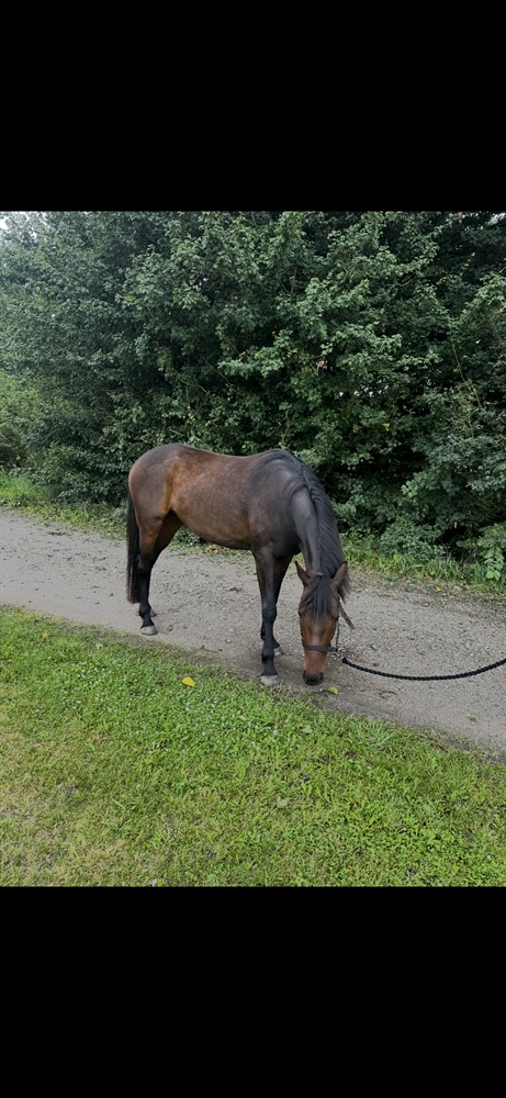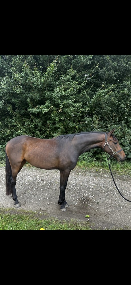 Hun har haft både sadel og hovedtøj på og er longeret med sadel. Hun har haft rytter oppe og lægge en enkelt gang, hvilket hun reagerede fint på. Hun mangler stadig en del erfaring og derfor kræver det en rytter som har tålmodighed og kan vise hende vejen - gerne en som har erfaring med ungheste.
