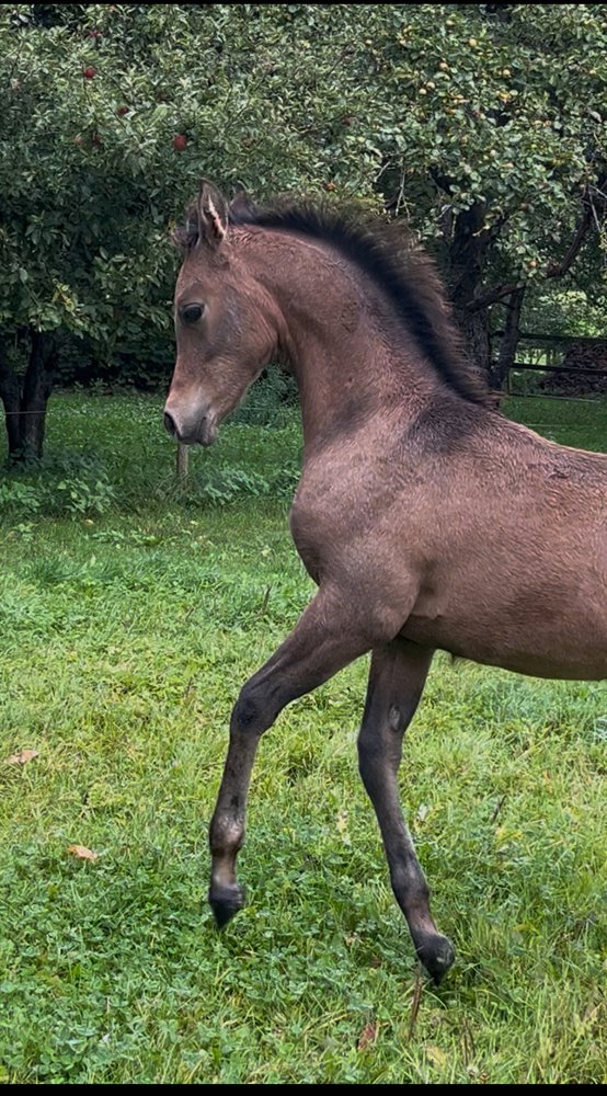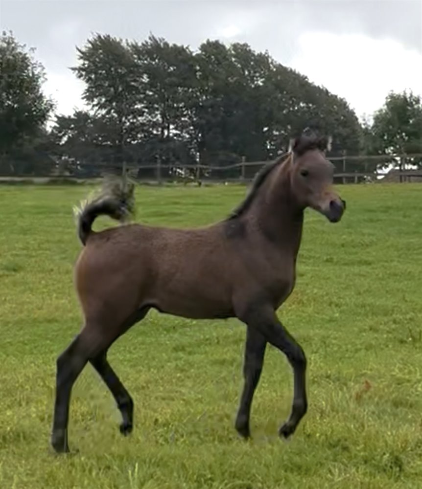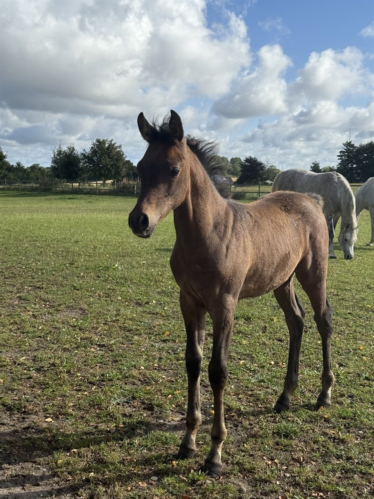 Stærk og velbygget krop med stærke lige ben. En god allround hest med mange muligheder. Forventes at blive ca. 155 cm i stang.