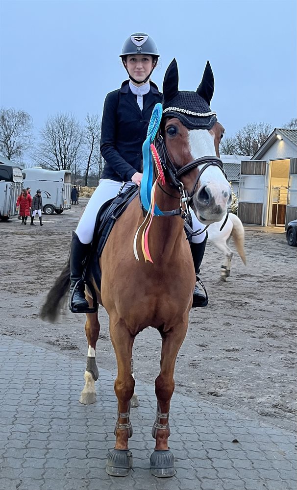 Hun er sød i al omgang, kan nemt trækkes af børn, går lige i trailer, elsker at springe, elsker at komme til stævner.