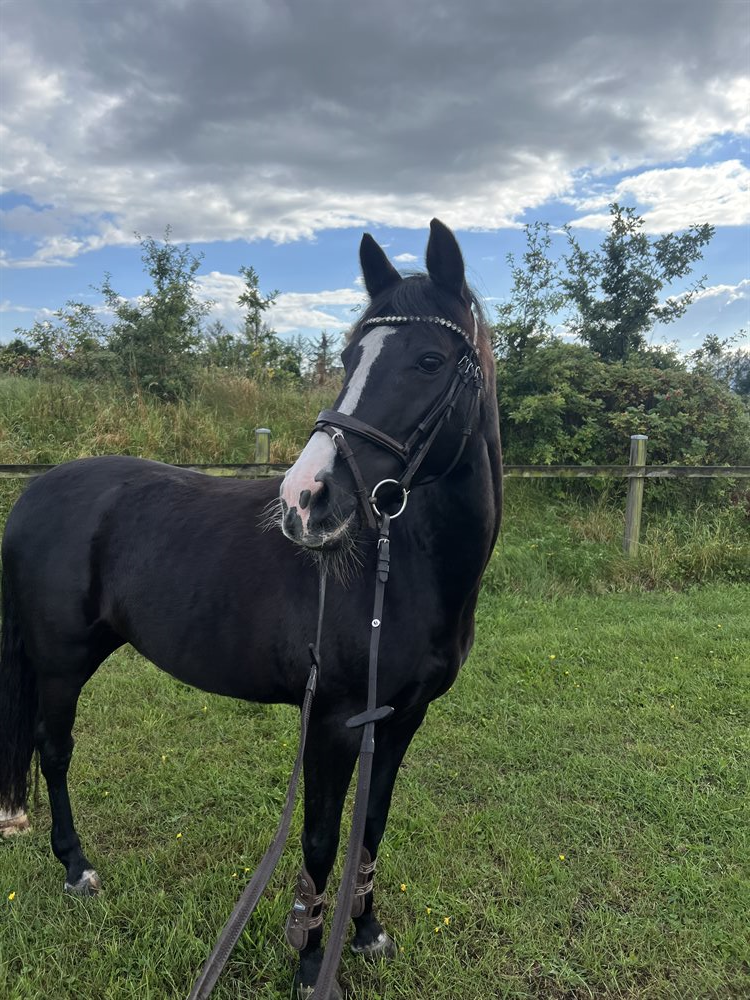 Hun er en frisk pony og kræver en rutineret rytter, men hun er stadig styrbar.