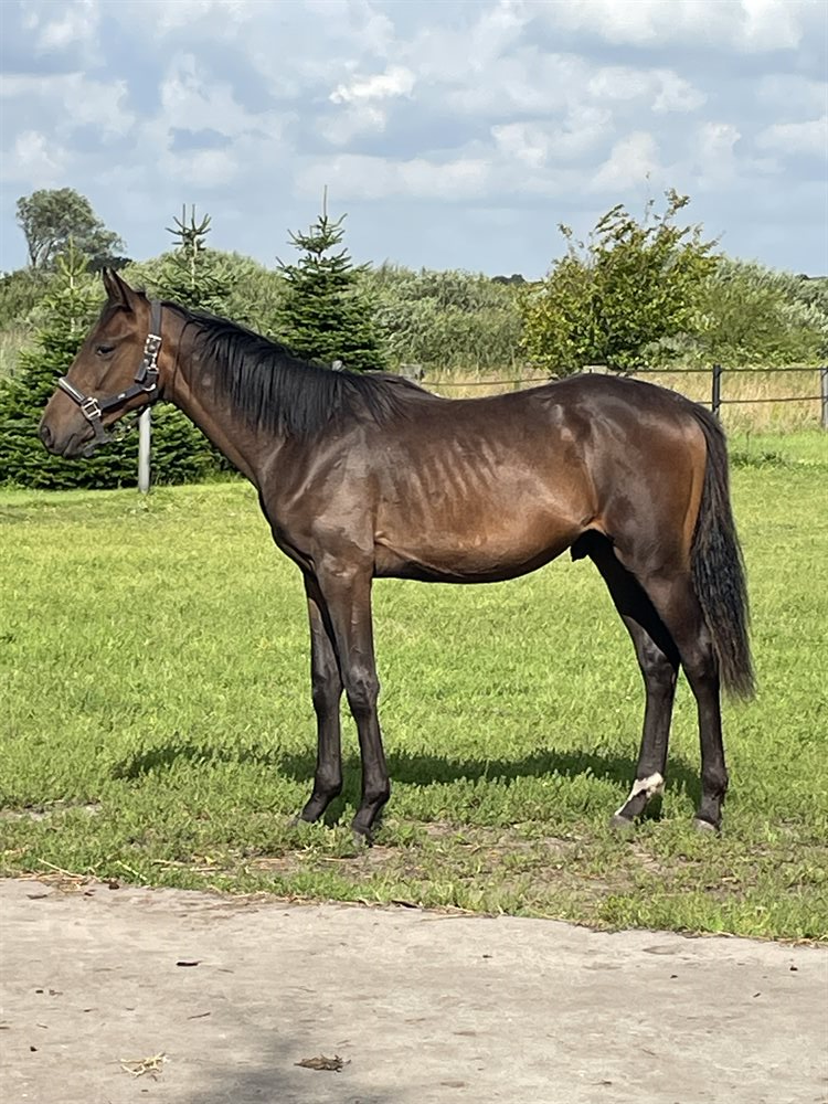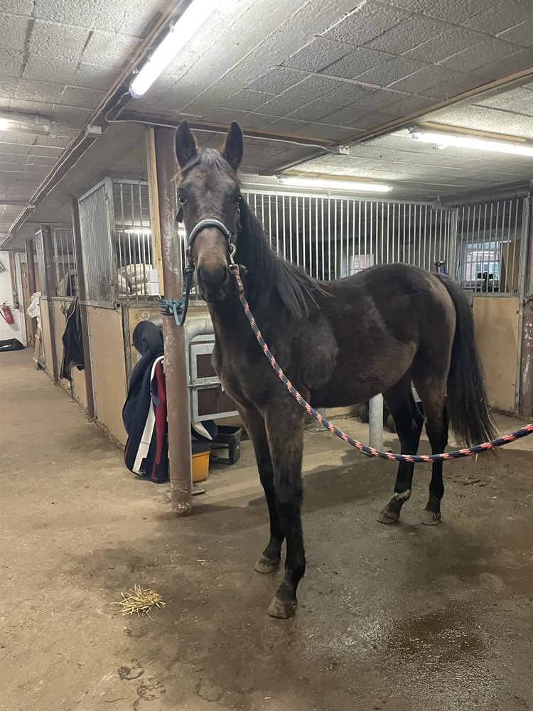 Han går i løsdrift med anden ung heste, men kan trækkes og stå bundet på strigleplads.