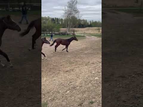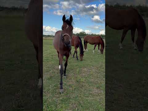 Klar til at flytte hjemmefra - og selvfølgelig gerne til et sted med jævnaldrende. Hun går i øjeblikket på fold med en anden hoppe. Bliver trukket til og fra fold uden problemer.