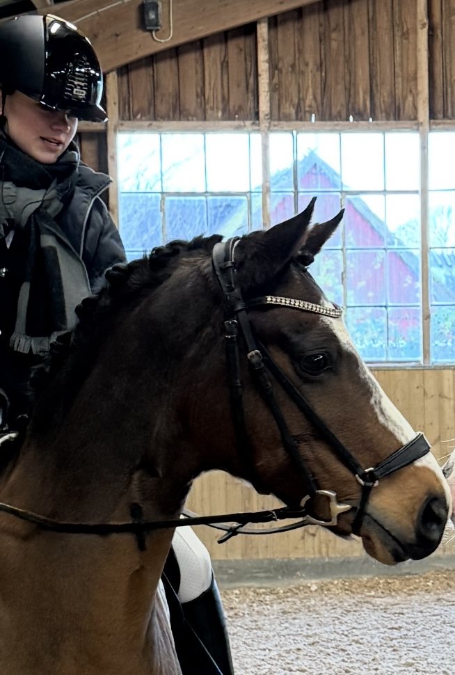 Vi har haft Lille siden oktober 2023 og Anna fik ham for at blive fortrolig i omgangen med heste og med ridningens grundprincipper. Dette har Lille gjort til perfektion. Anna og Lille har øvet sig på dressur og redet enkelte stævner, men det har været den daglige omgang med Lille der har været i højsædet. De har redet i skoven og redet dejlige galopture på marken og Lille er altid sød og til at kontrollere.