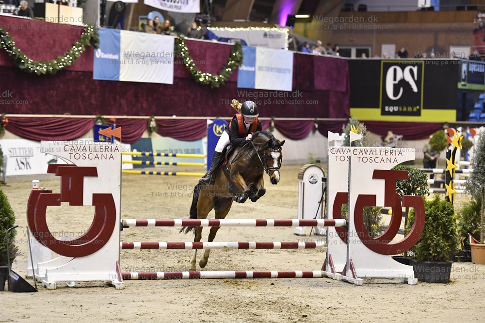 De har ikke gjort det i springning, men med tidligere ejer har Lille sprunget ved Christmas Show (se fotos) og han har også været startet i LA dressur. Lilles hjerte banker nok mest for springningen men kræver en rytter der kan vise ham vejen.