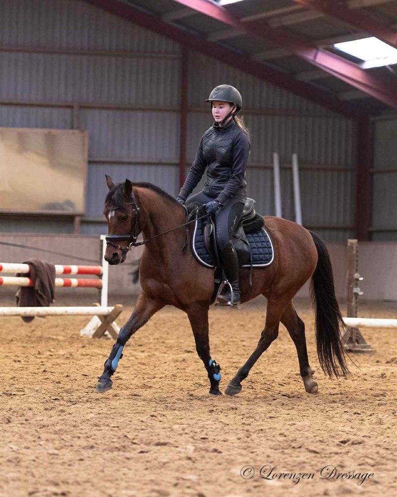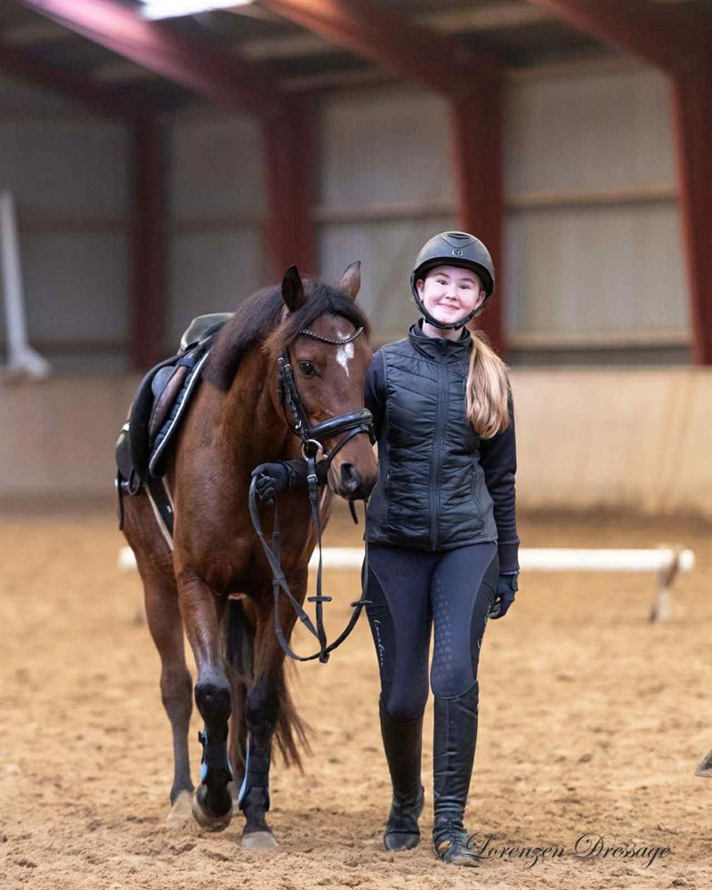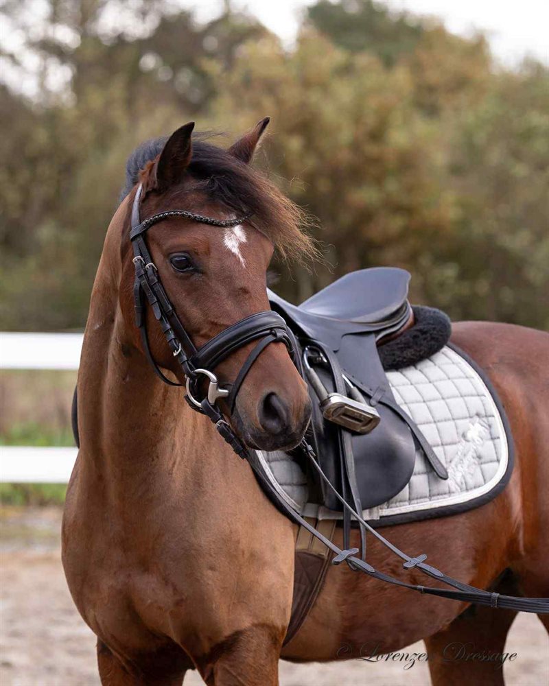 Manzo er redet i lidt over 2 mdr. Kan rides både af børn og voksne, da han har lidt fylde.