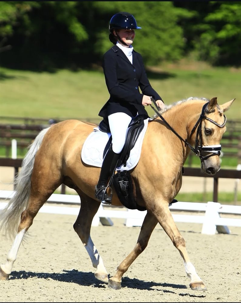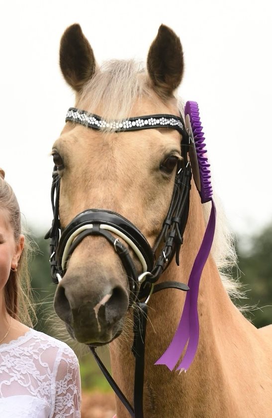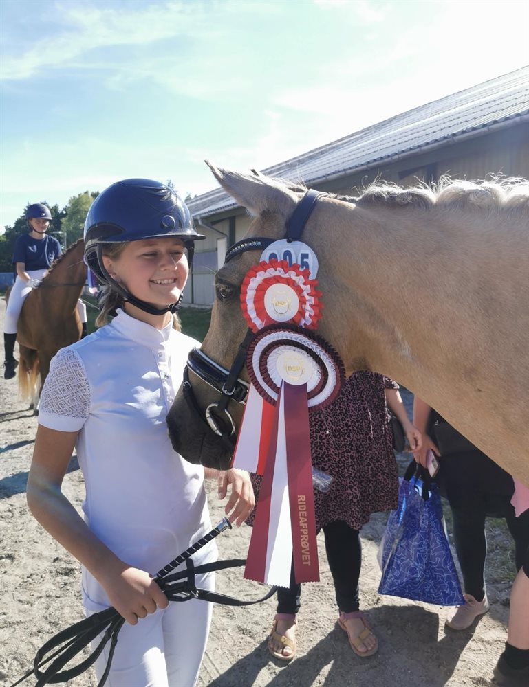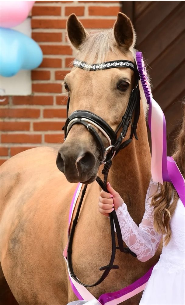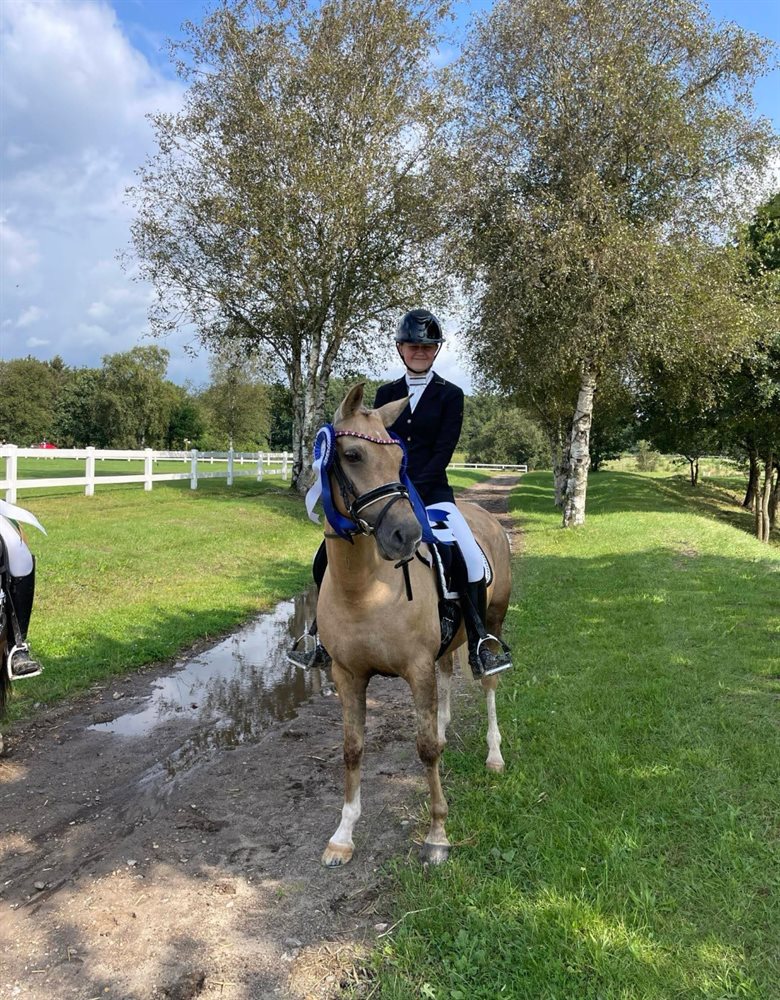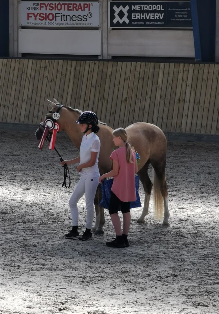 Hun er ikke en begynder pony, men den perfekte pony til rytteren som har sin grundridning på plads, hvad end man vil ride dressur, spring eller det hele.