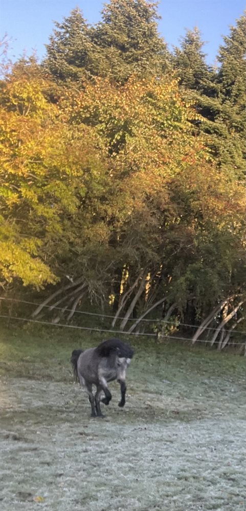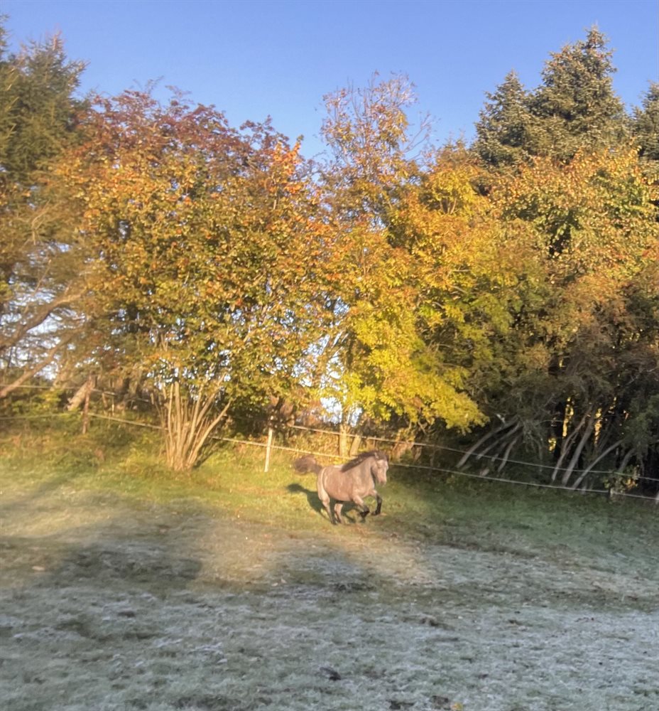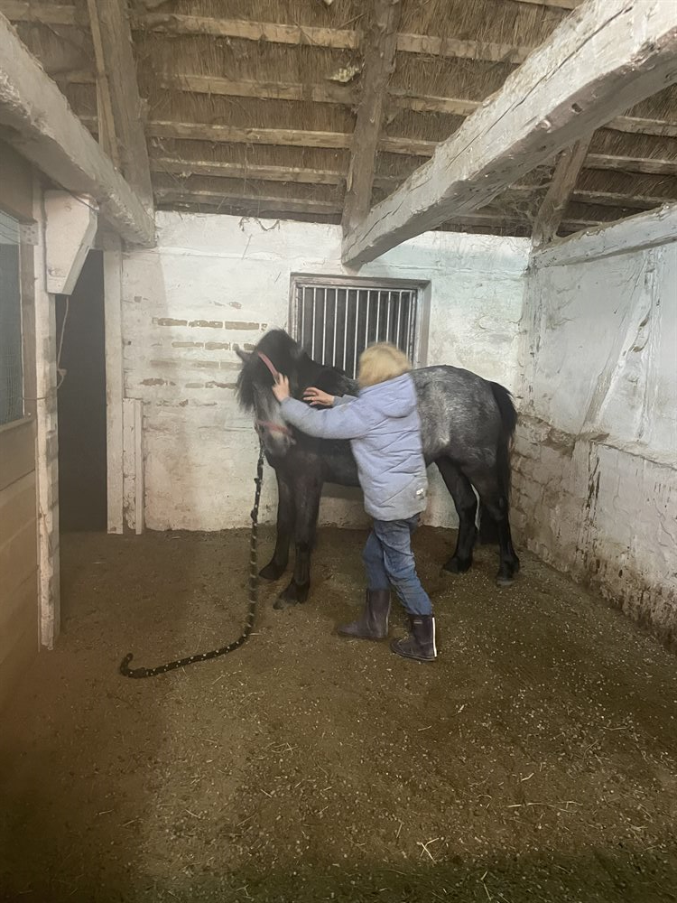 Her hos mig har hun gået sammen med min araber hoppe i løsdrift, hvilket hun trives godt i og reagere heller ikke på at blive sat i boks. Hun kan hvad hun skal kunne i den alder, hun har været en del på ture og reagere helt fornuftigt på alt slagt trafik, tung som let. Hun kan læsses og står fint i trailer. Står fint ved smed, samt kan min datter på 7 år selv ordne hove på hende, trække med hende og Monick elsker opmærksomheden og en godbid.