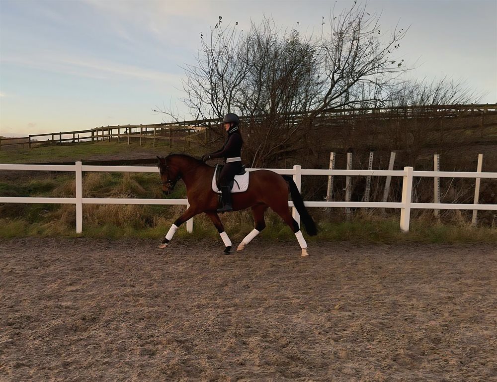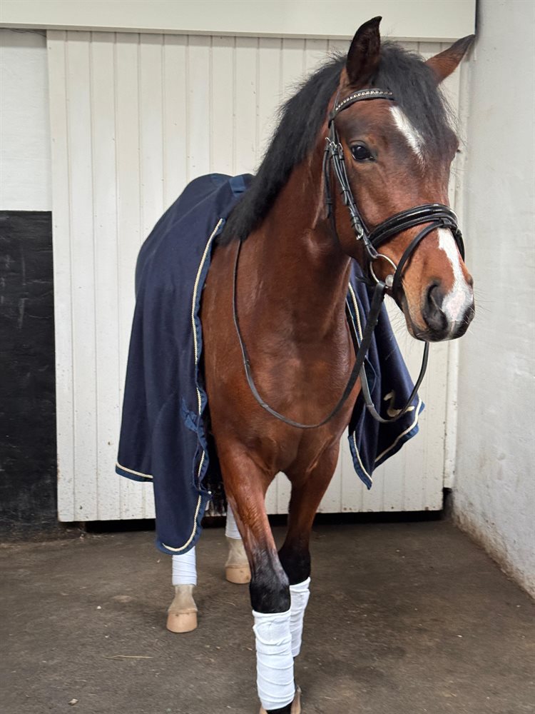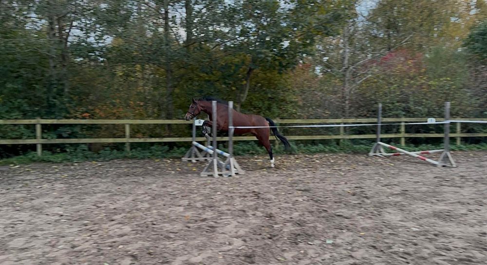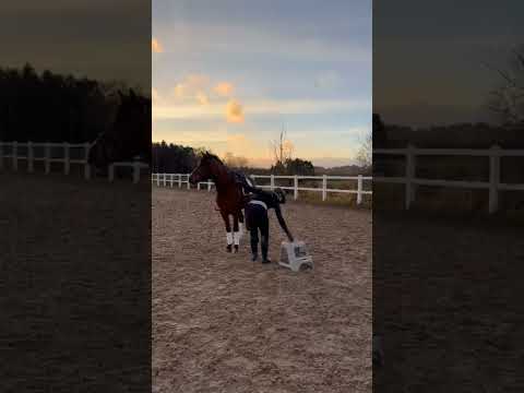 Broken in in the spring, and has been taken back to work gradually couple months ago. Can be ridden inside, outside, alone and with other horses with no problem.